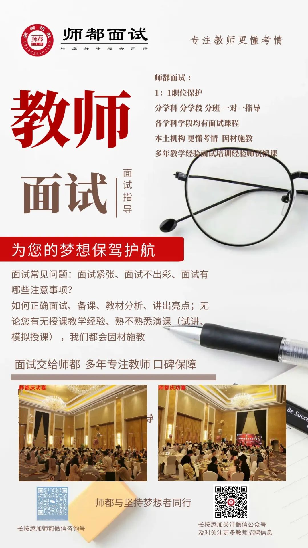 2024校招、社招面试班开课中……(多种班型可供选择,多名成功上岸案例!)师都专注教师培训,口碑保障!教育理论线下课3月16日开课!学科专业知识23日开课!☎ 咨询热线:18751034088 15805245607(微信同号)