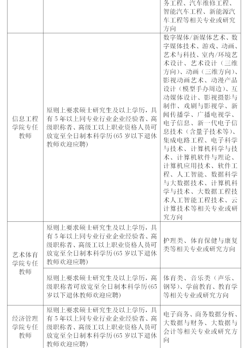 5.招聘对象:(1)应往届毕业生、实习研究生;(2)银龄教师:相关学科专业领域优秀退休教师,须具有副高级及以上职称,年龄一般在65(含)岁以下,能较好地履行约定的工作职责。