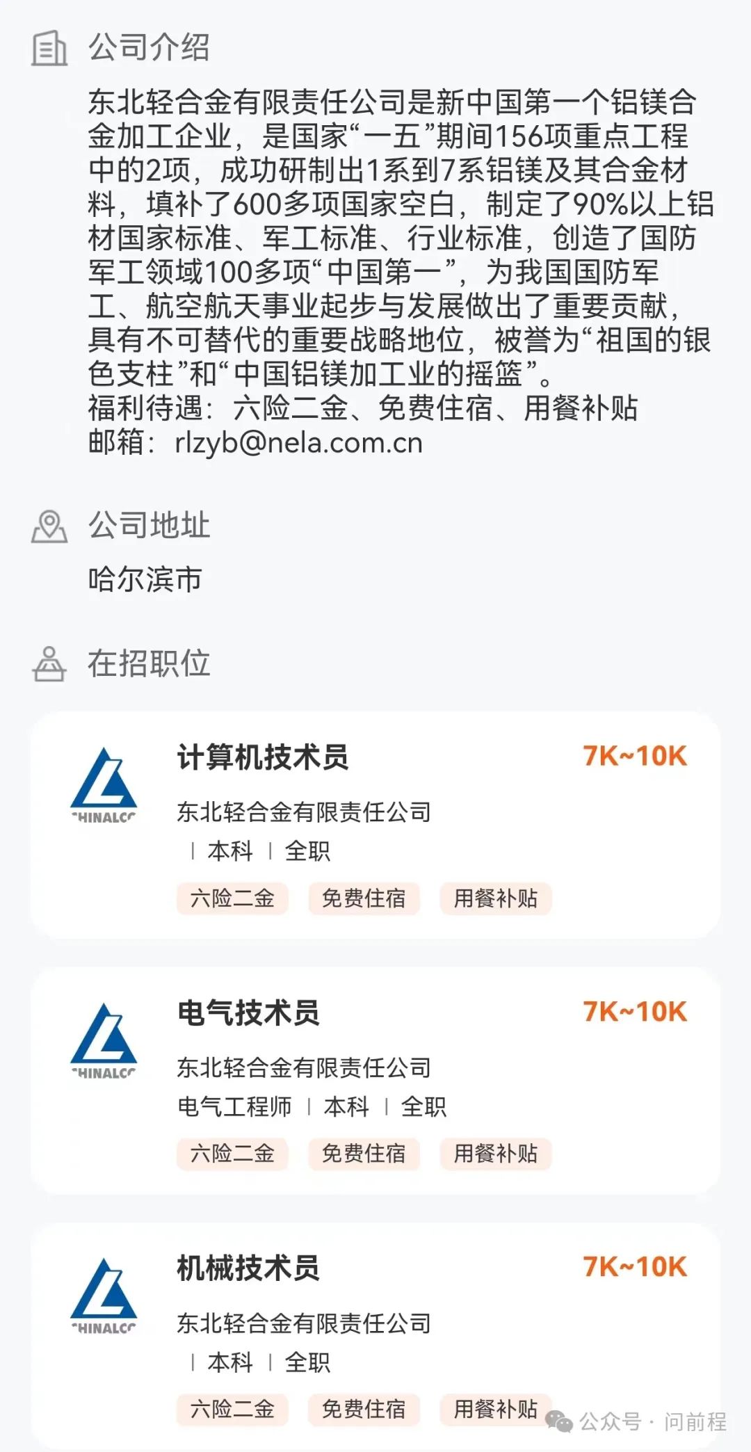 >【国家重点工程-六险二金、住宿、餐补】东北轻合金有限责任公司