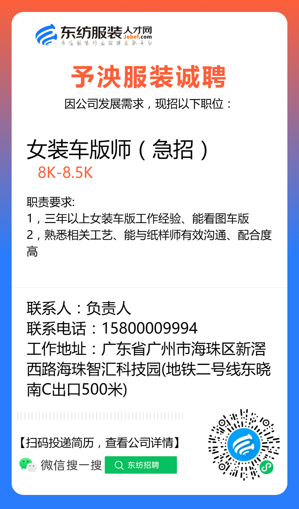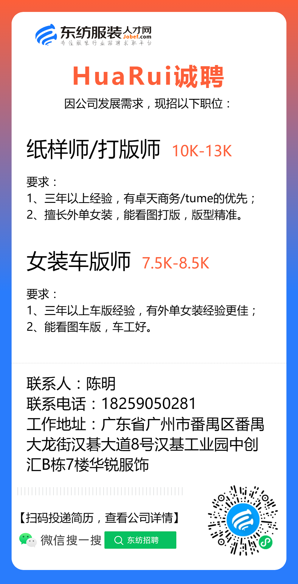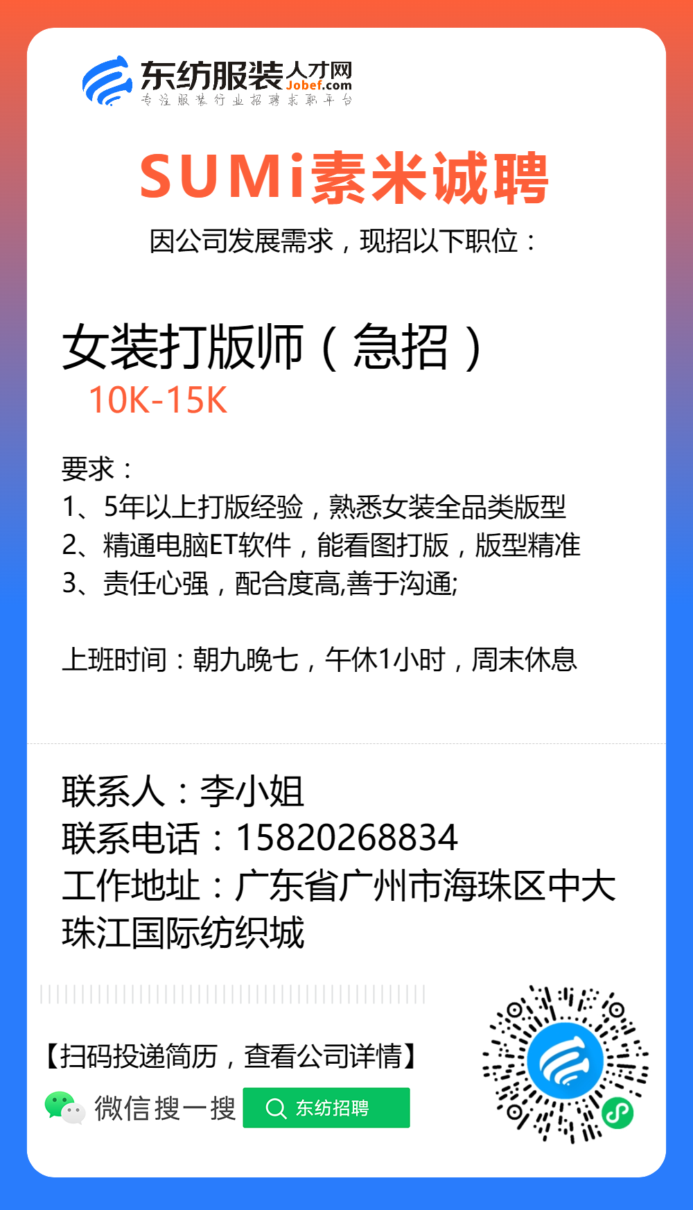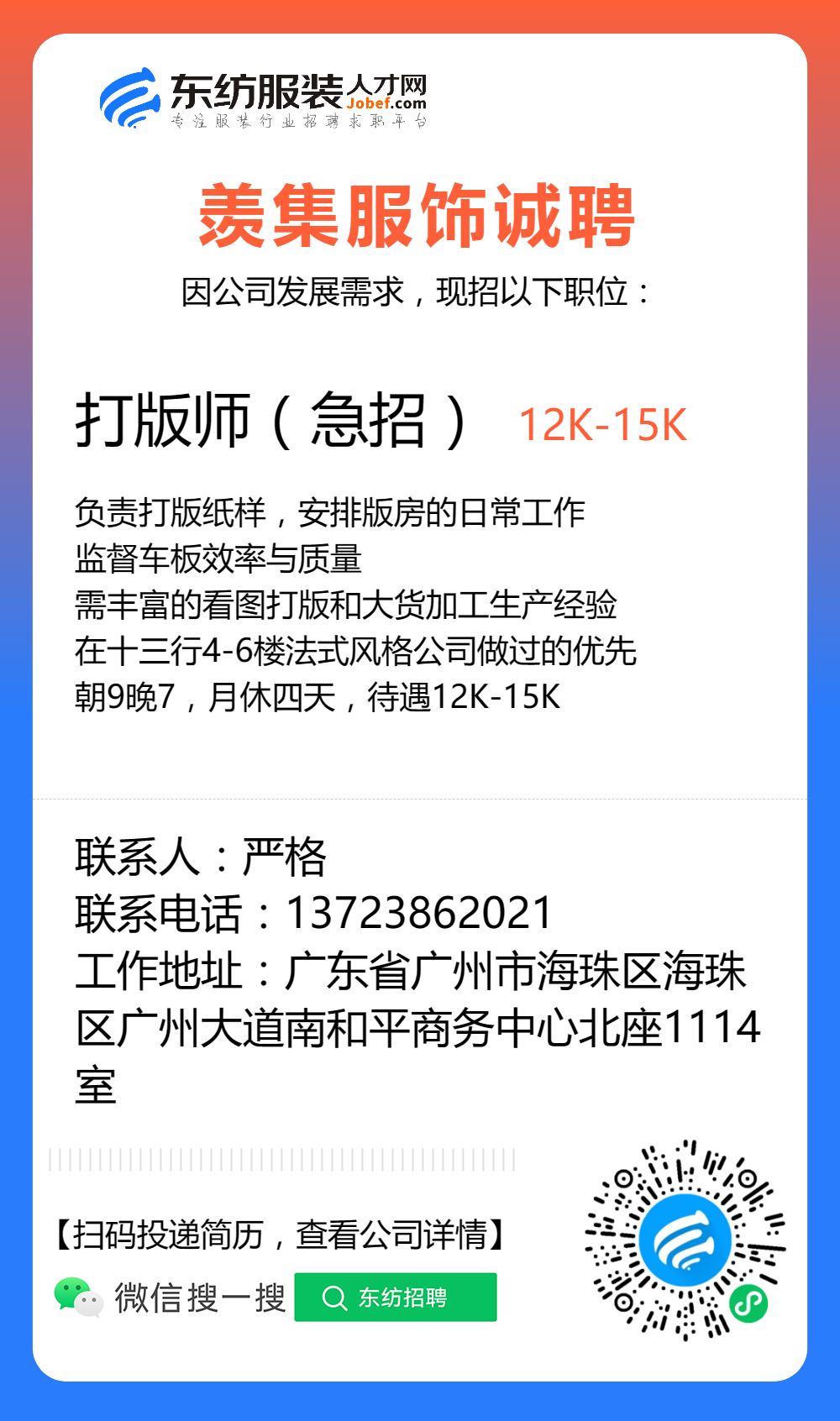 >服装招聘·技术类丨3. 16号,打版师、车版师……