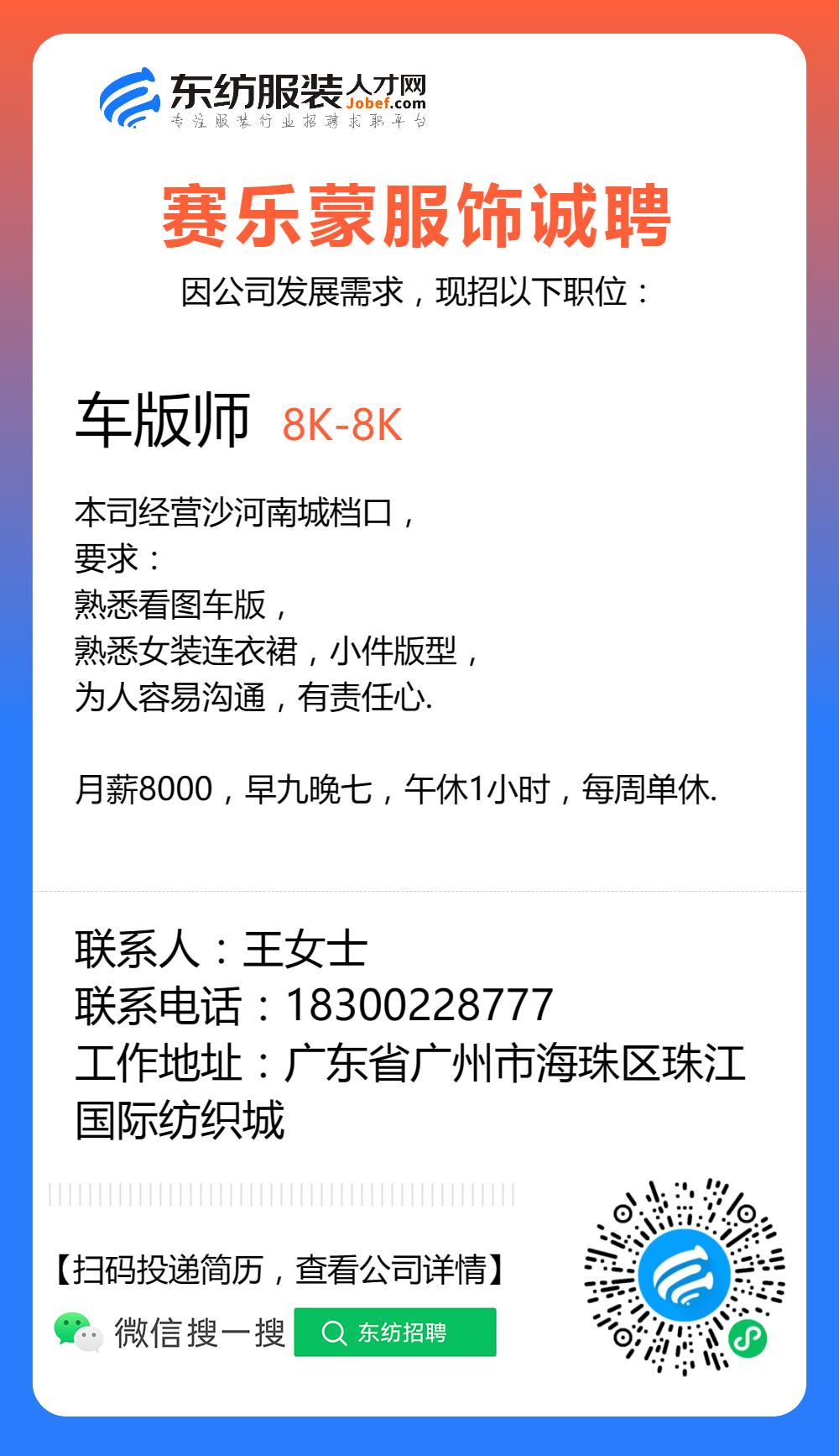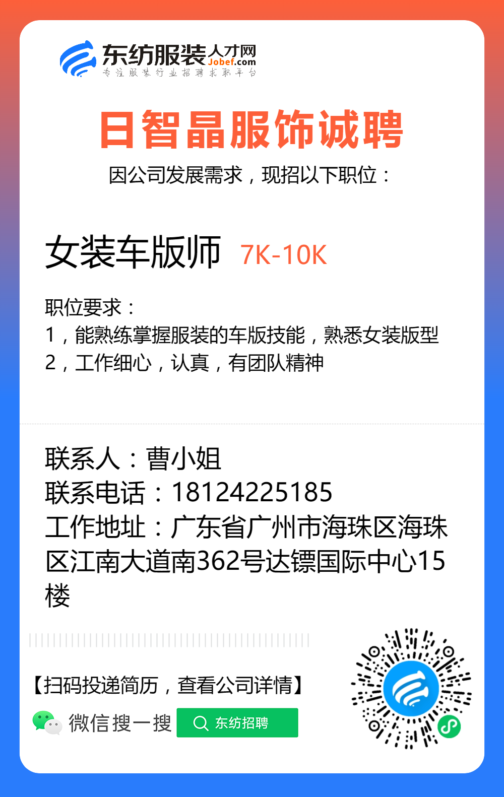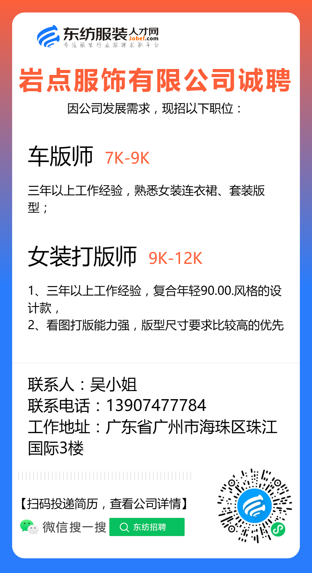 >服装招聘·技术类丨3. 16号,打版师、车版师……