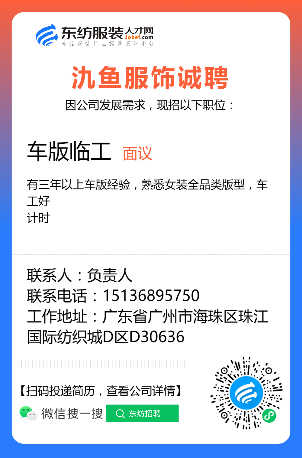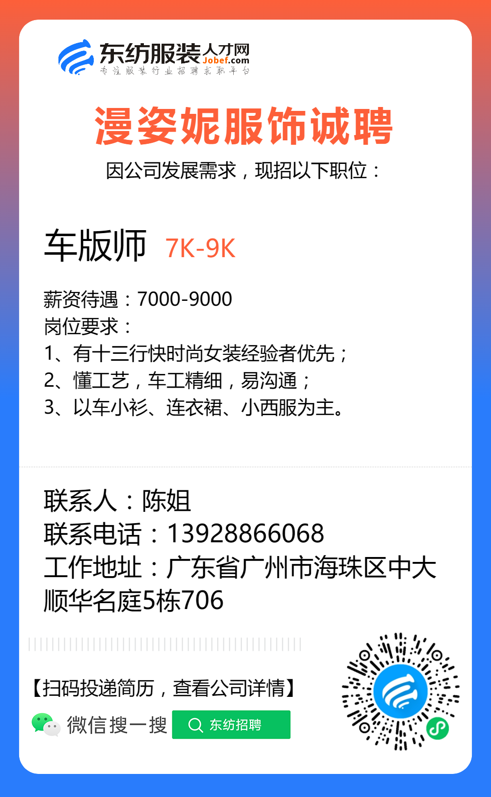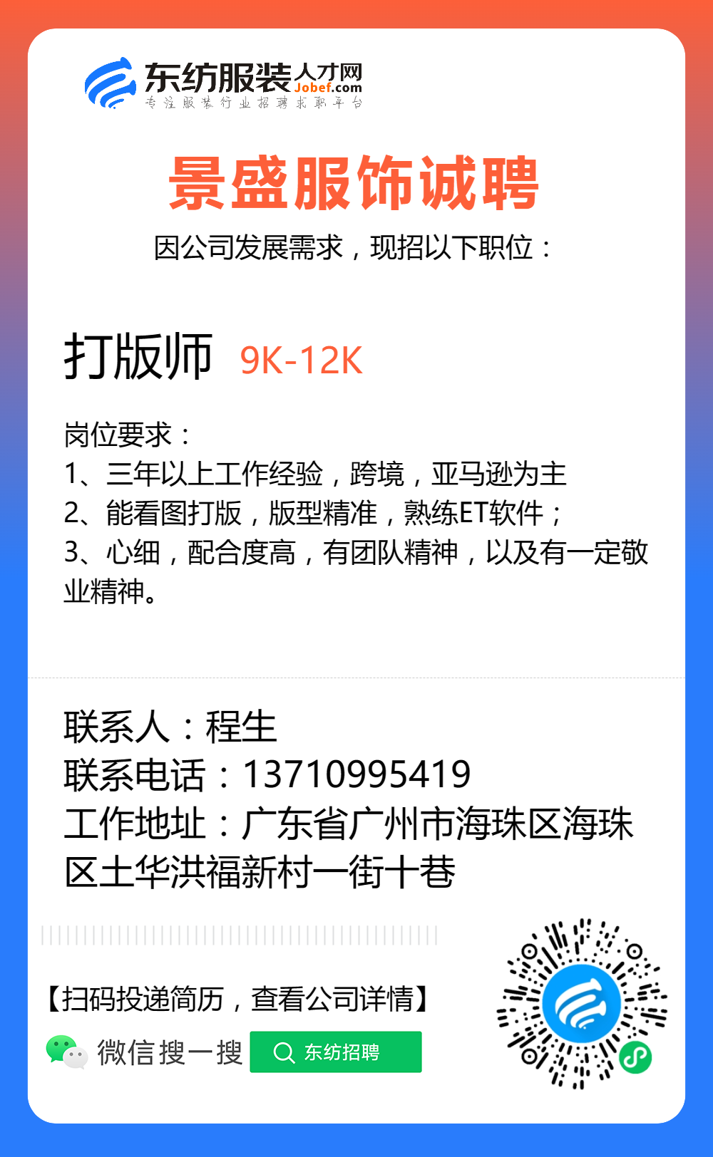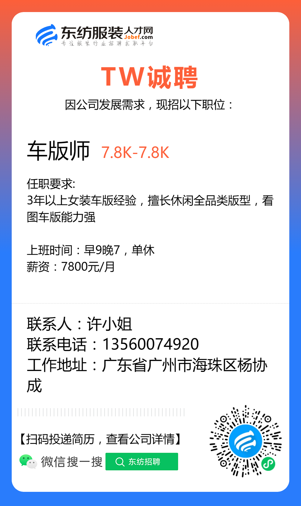 >服装招聘·技术类丨3. 16号,打版师、车版师……