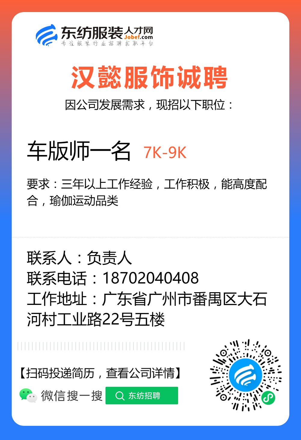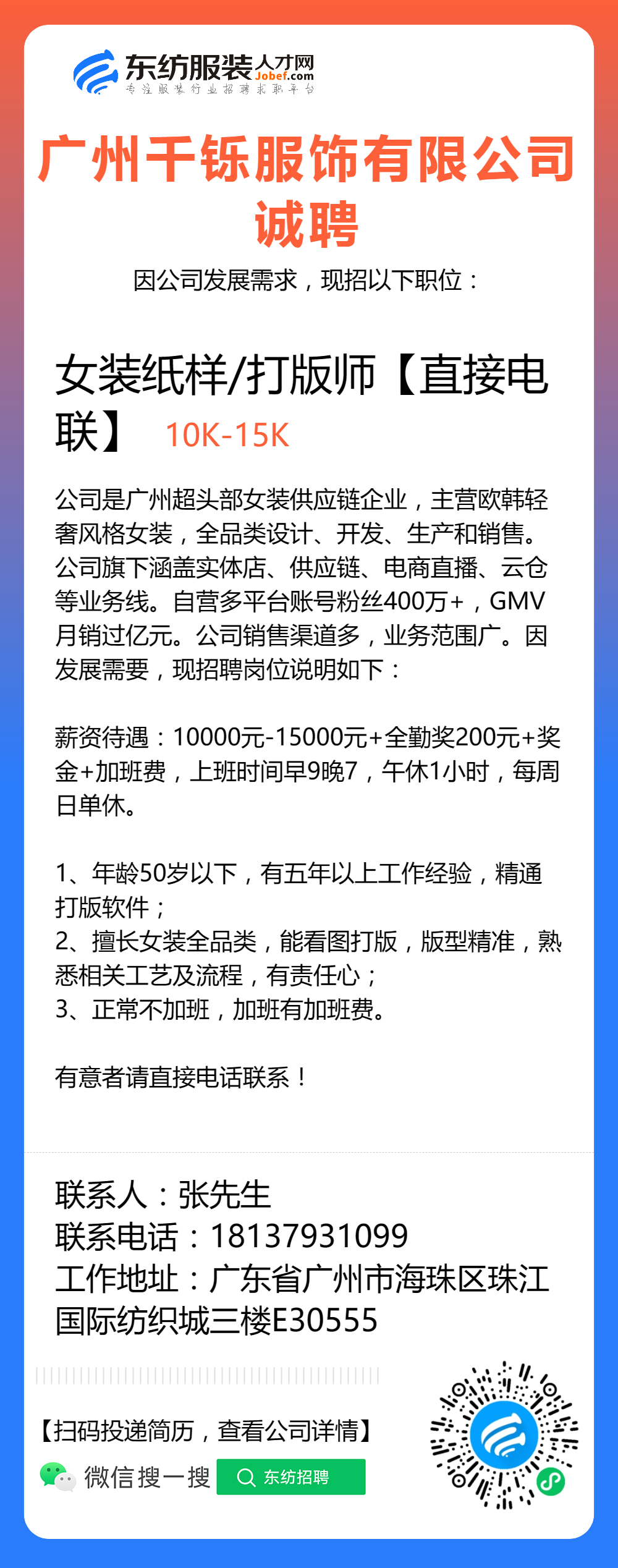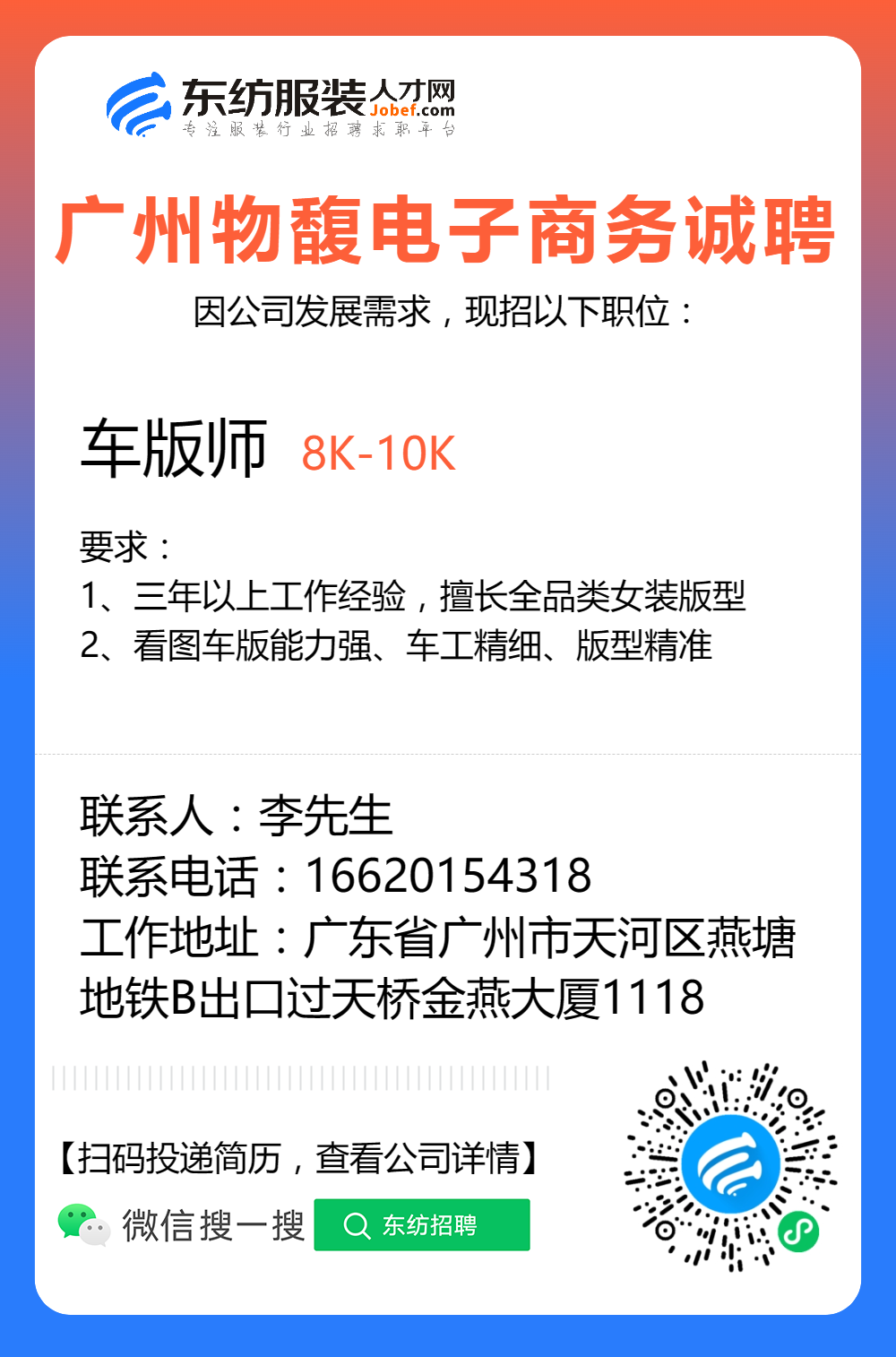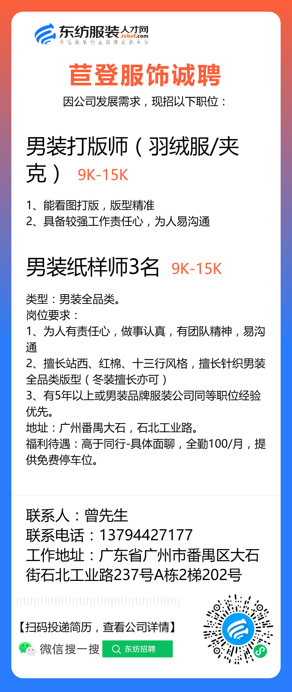 服装招聘·技术类丨3. 16号,打版师、车版师……