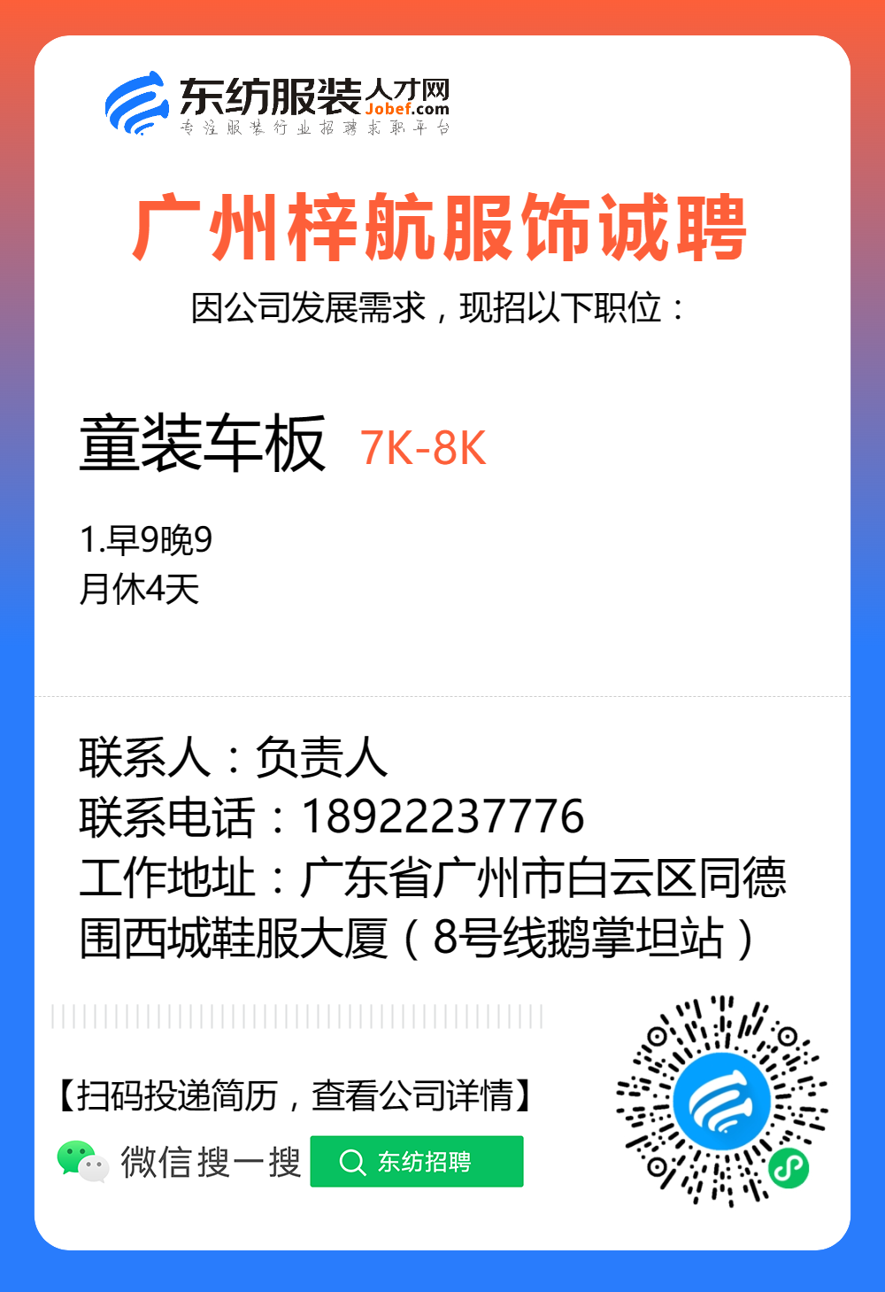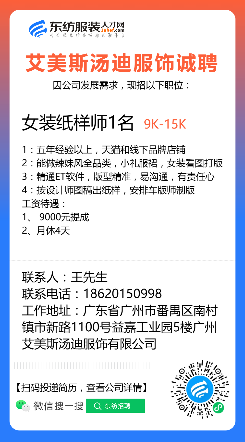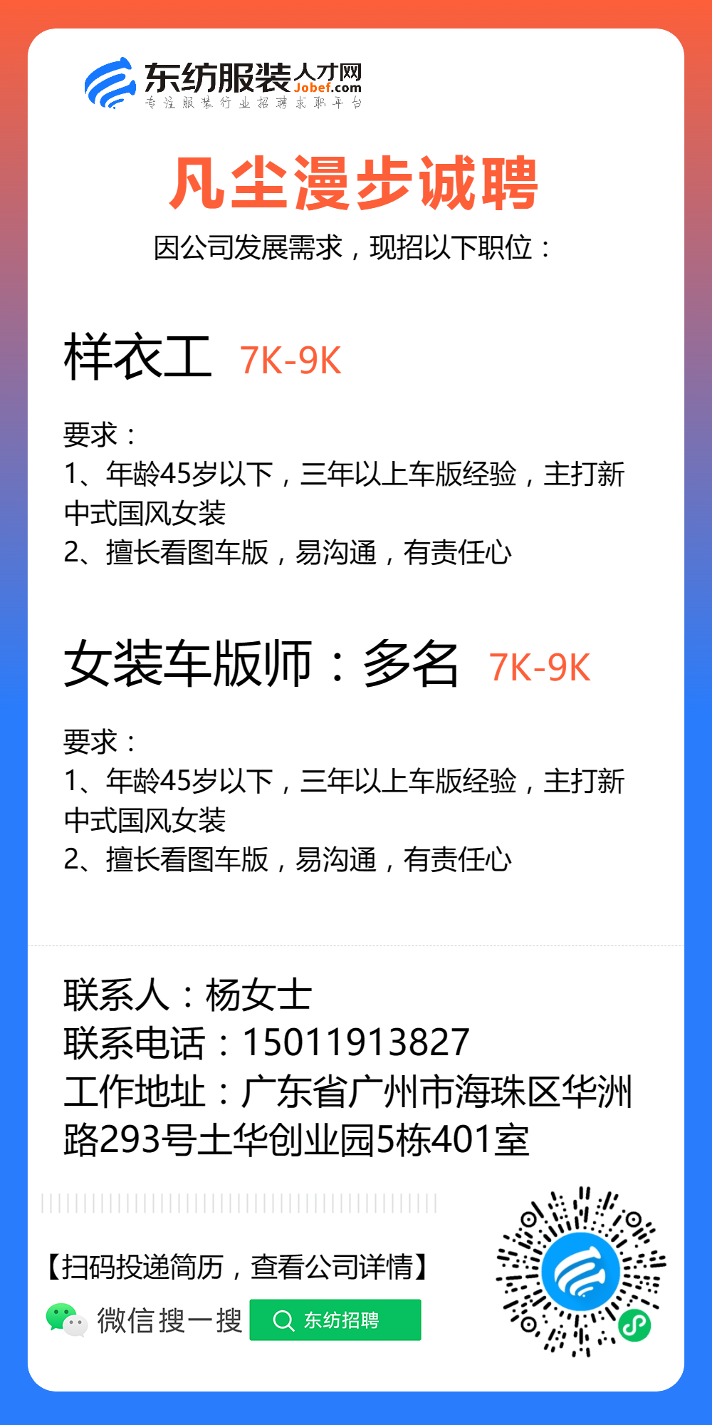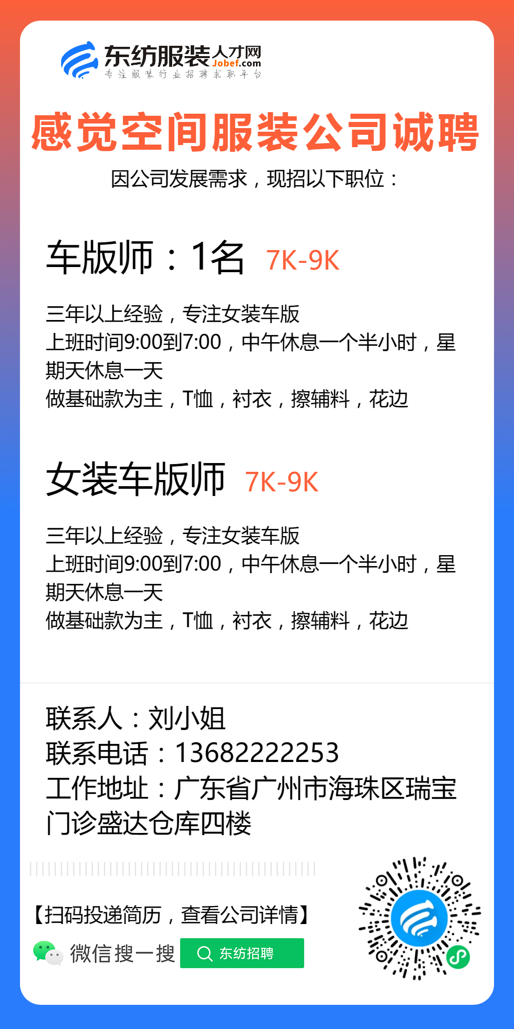 服装招聘·技术类丨3. 16号,打版师、车版师……