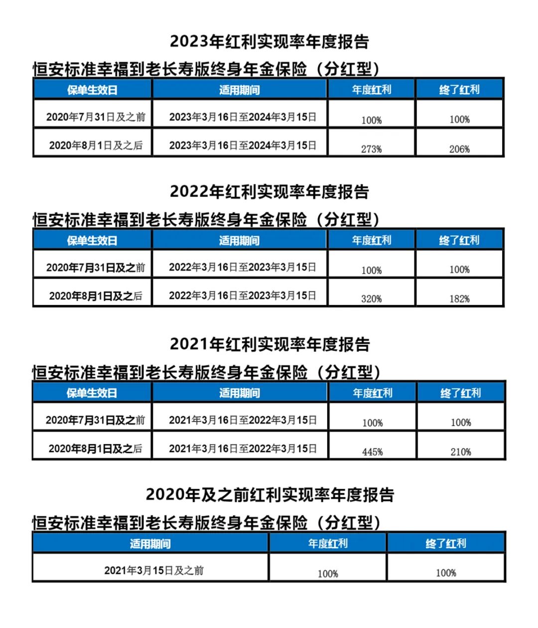 另外产品是十几年前老产品,分红实现率一直都稳定在100%及以上。