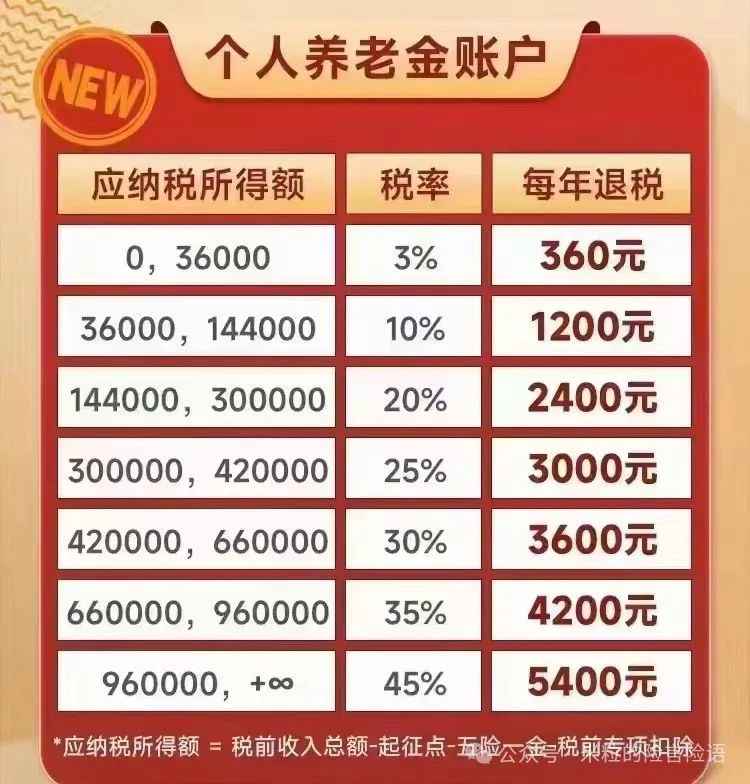 《个人养老金实施办法》规定参加个人养老金的应当是在中国境内参加城镇职工基本养老保险或者城乡居民基本养老保险的劳动者。简单说,就是有交社保还没退休的人。退休人员已领取基本养老保险待遇,不再参加个人养老金制度。个人养老金资金账户实行封闭运行,参加人达到退休年龄才能领取,这样使得这笔钱真正为养老所用。缴存的资金可选择购买符合规定的储蓄存款、理财产品、商业养老保险、公募基金等金融产品,并自行承担投资风险。最吸引人的是,个人养老金可享受税收优惠政策。个人向个人养老资金账户缴费上限为12000元,缴费可按照当期个人纳税抵扣项税前扣除。由于每个人收入不一样,对应的税率不一样,抵扣的额度也就不一样。收入越高,对应的税档越高,个人养老金起到的节税效应就越明显。值得注意的是,个人养老金在退休领取时会要单独按照3%的税率计算缴纳个人所得税,所以应纳税所得额在最低档的并不建议购买。