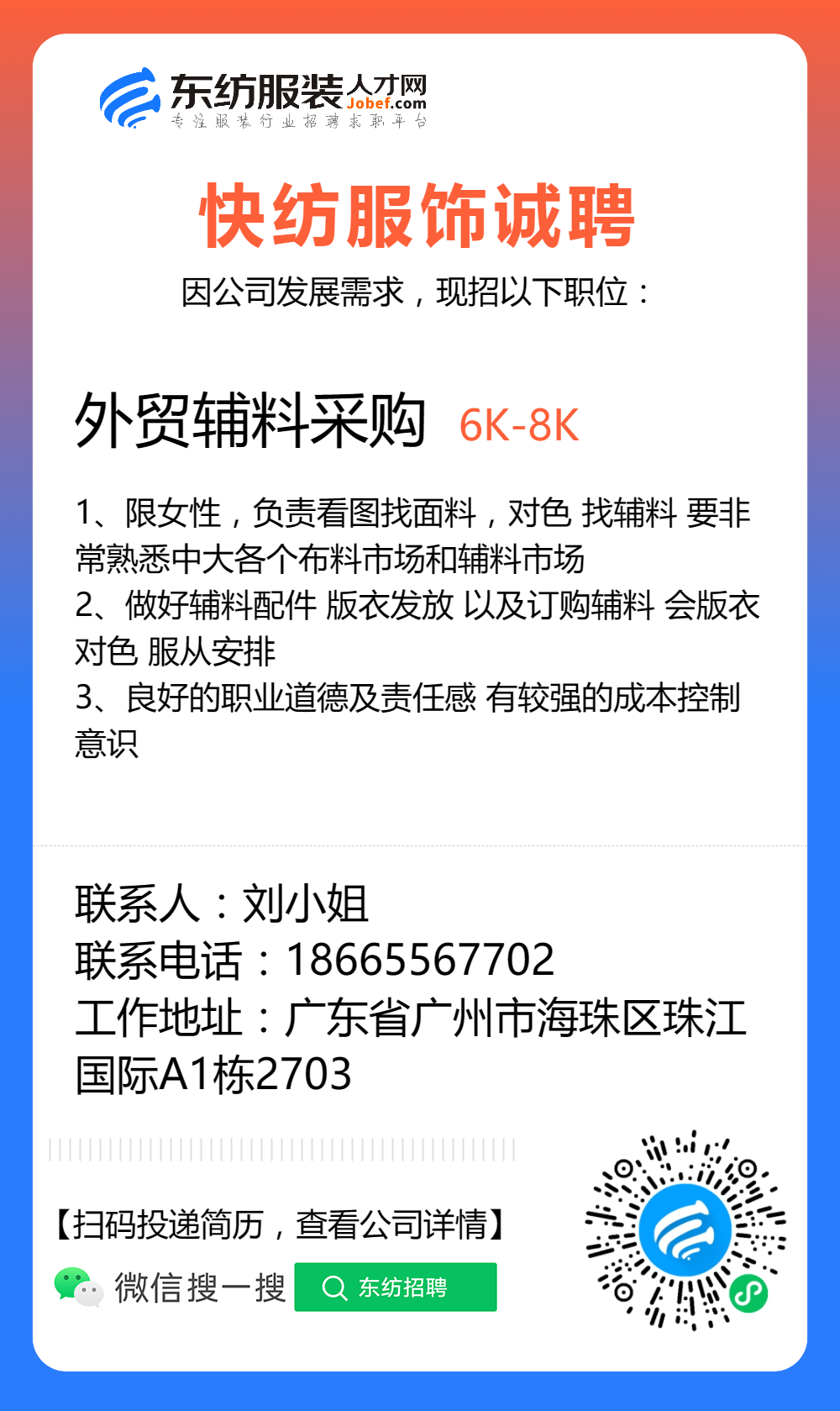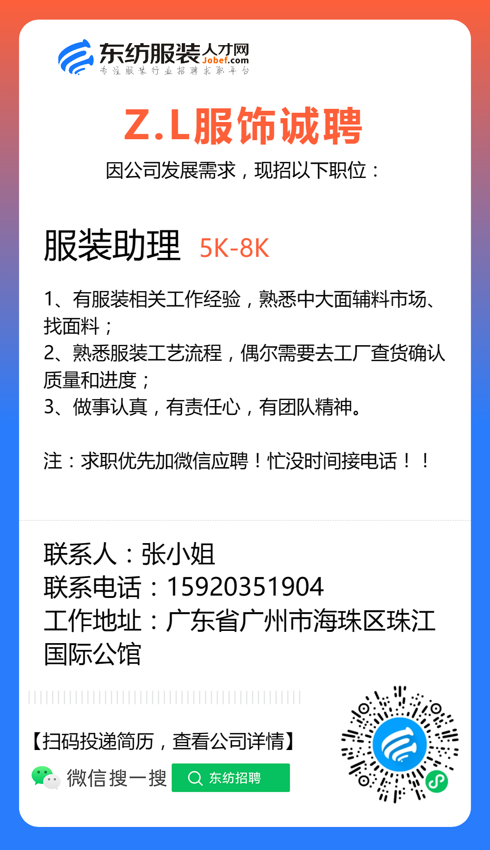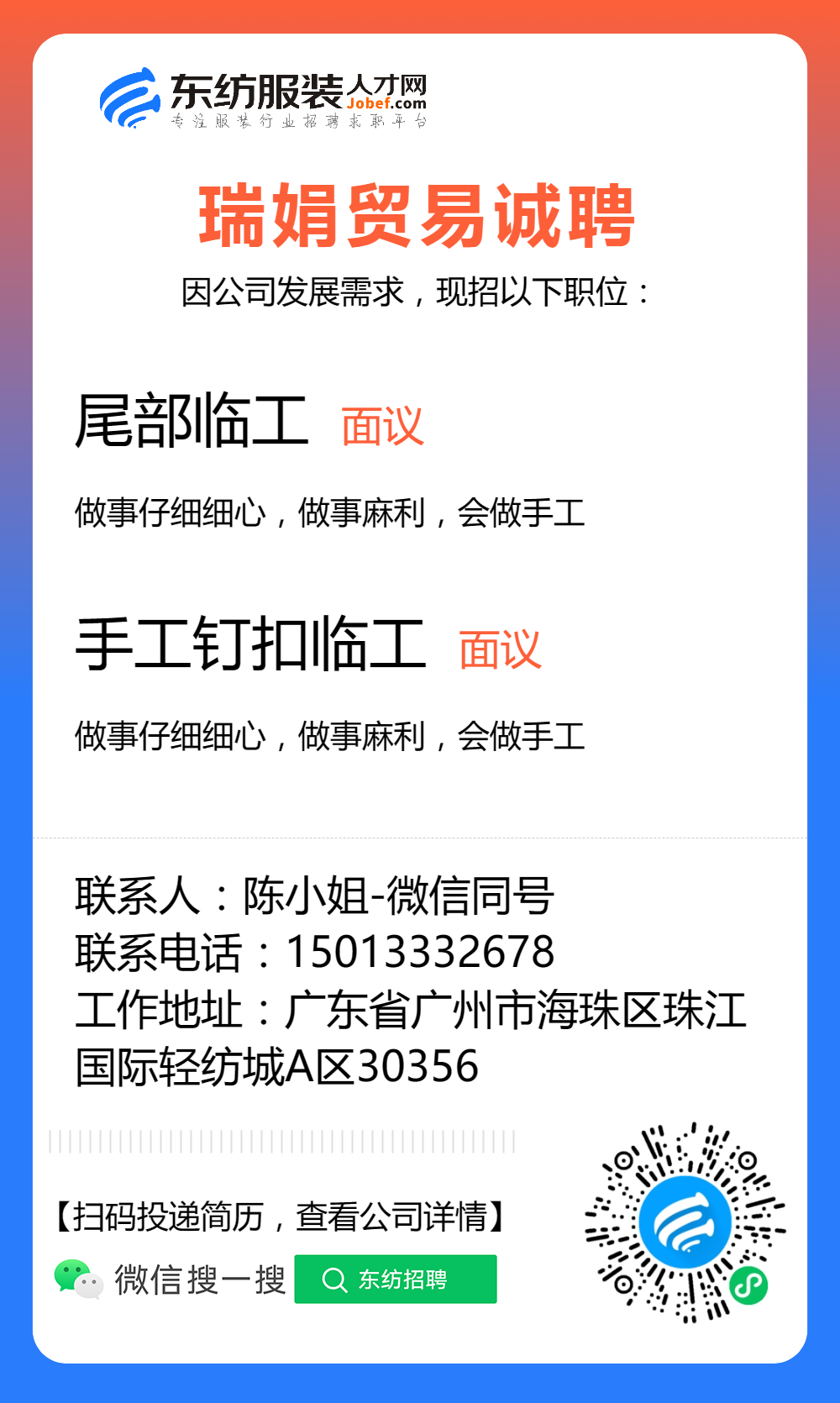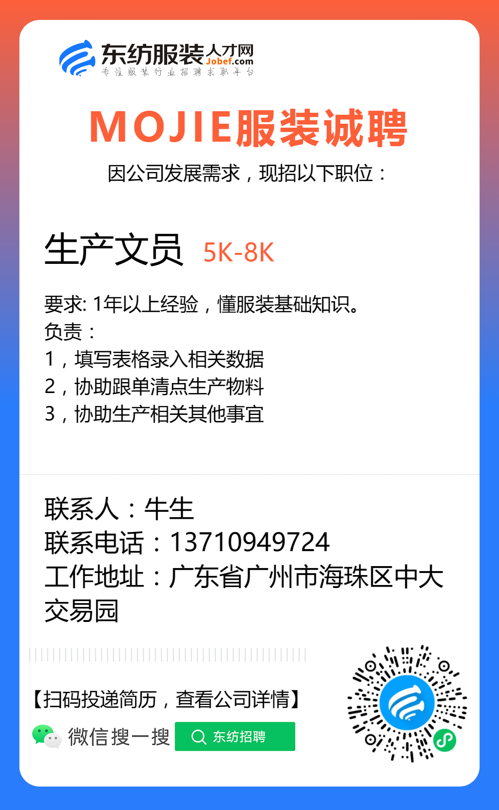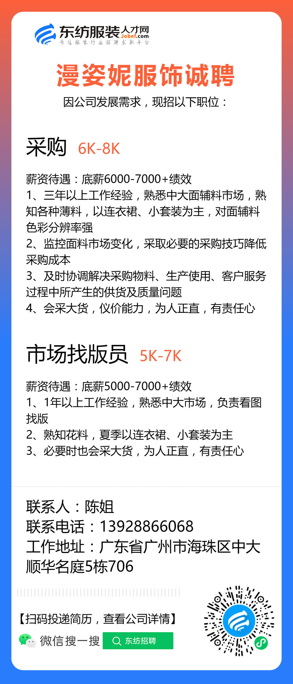 >服装招聘·工厂类丨3. 17号,跟单、采购、车位、裁床、尾部……