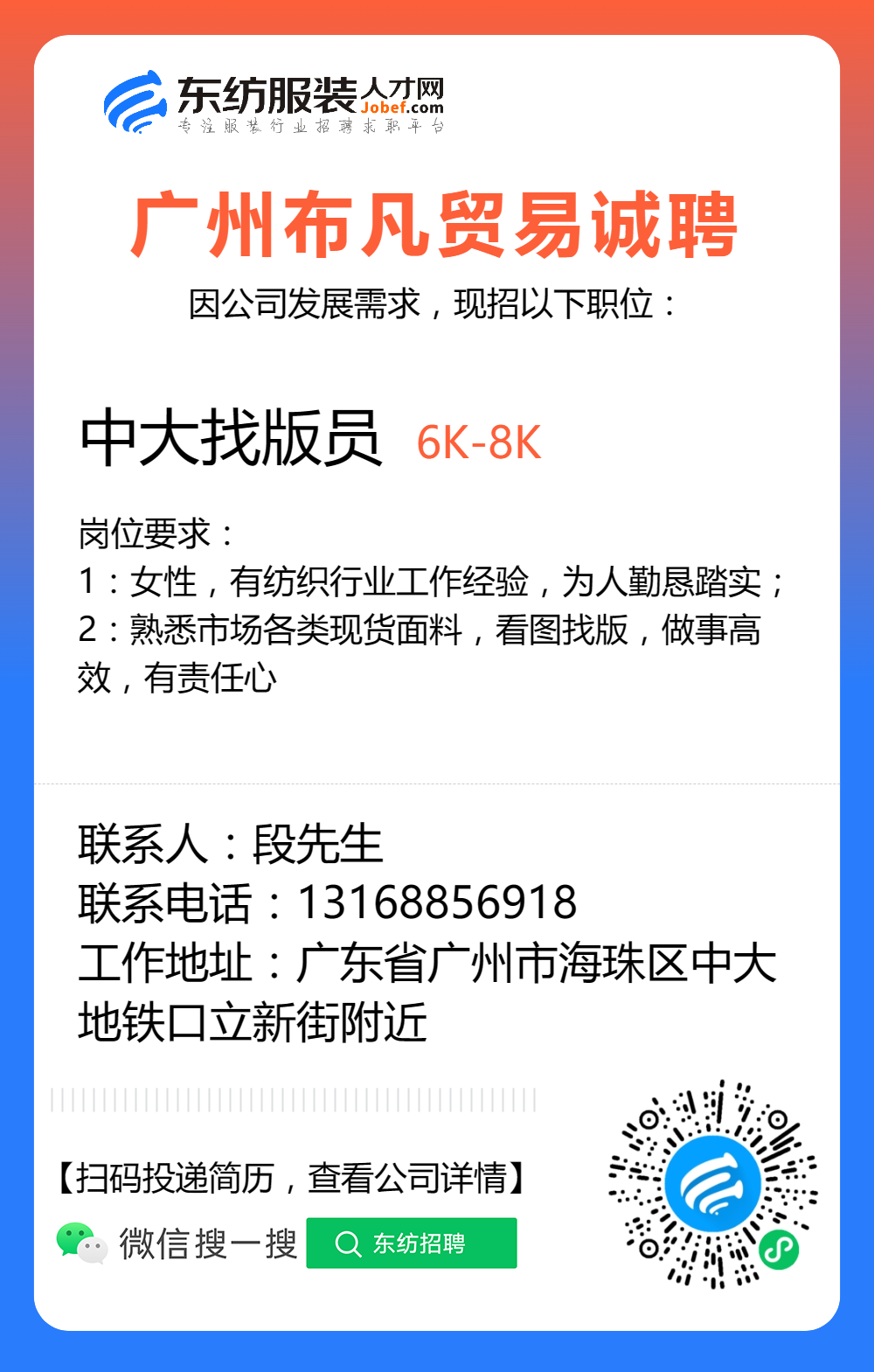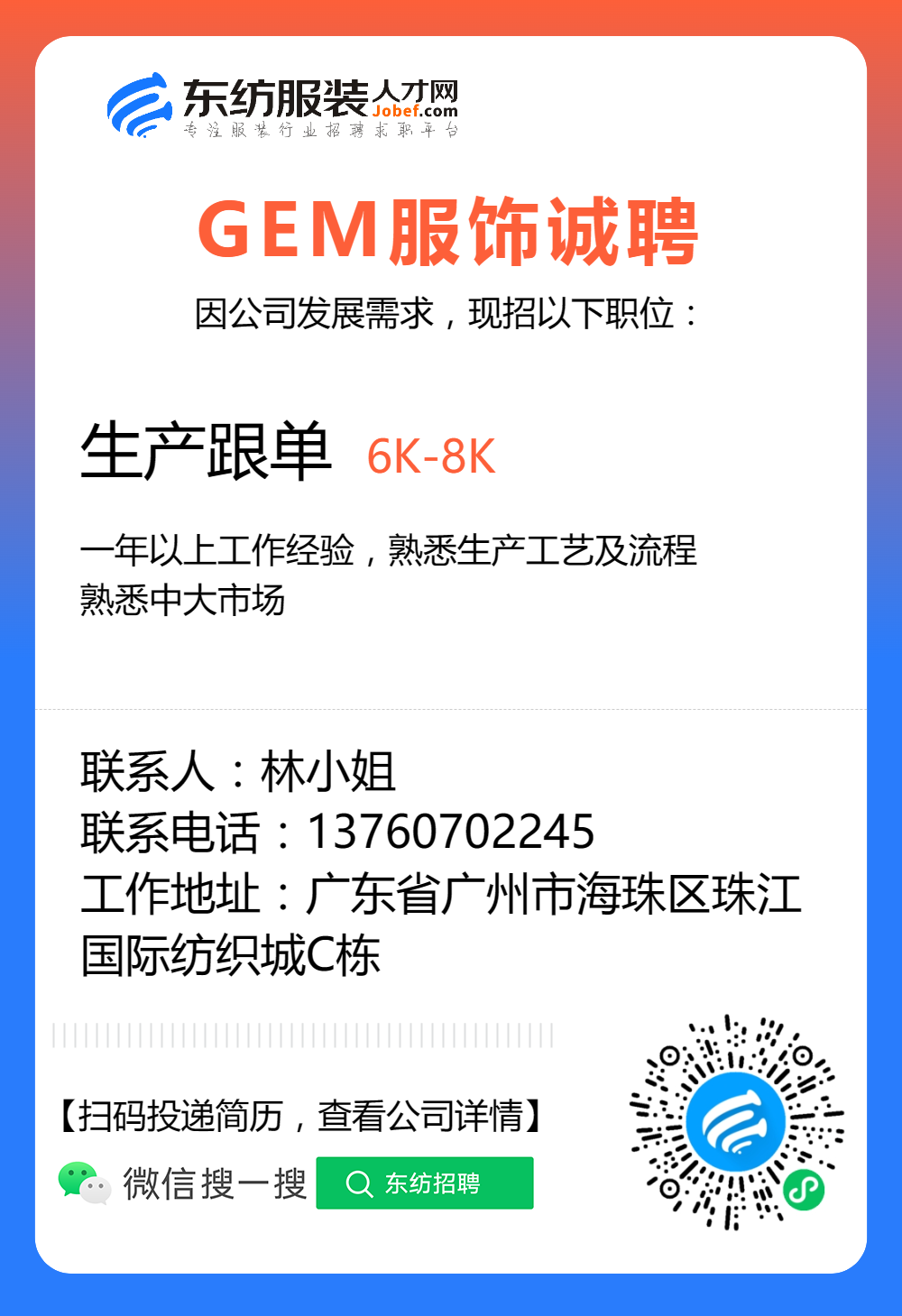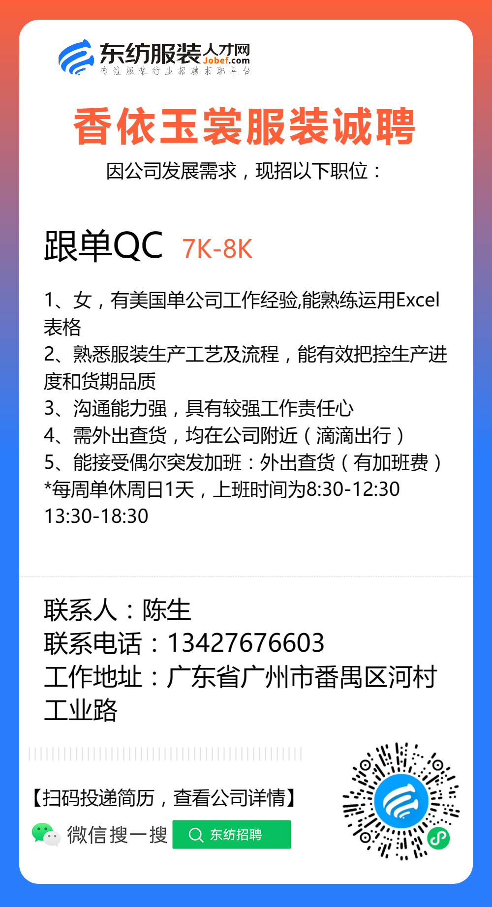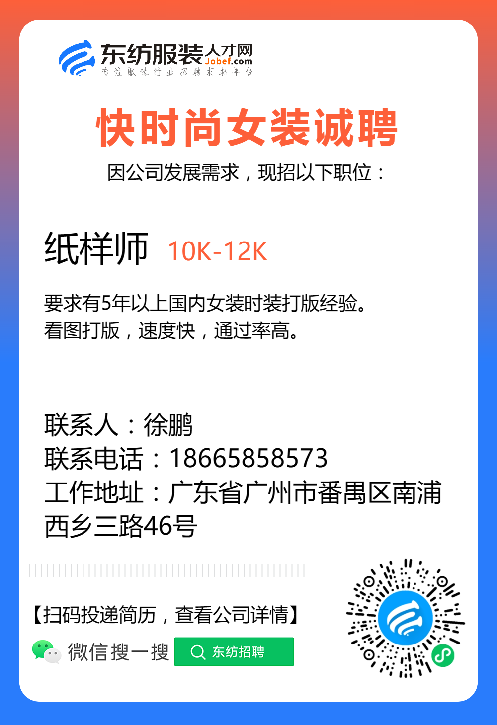 >服装招聘·工厂类丨3. 17号,跟单、采购、车位、裁床、尾部……