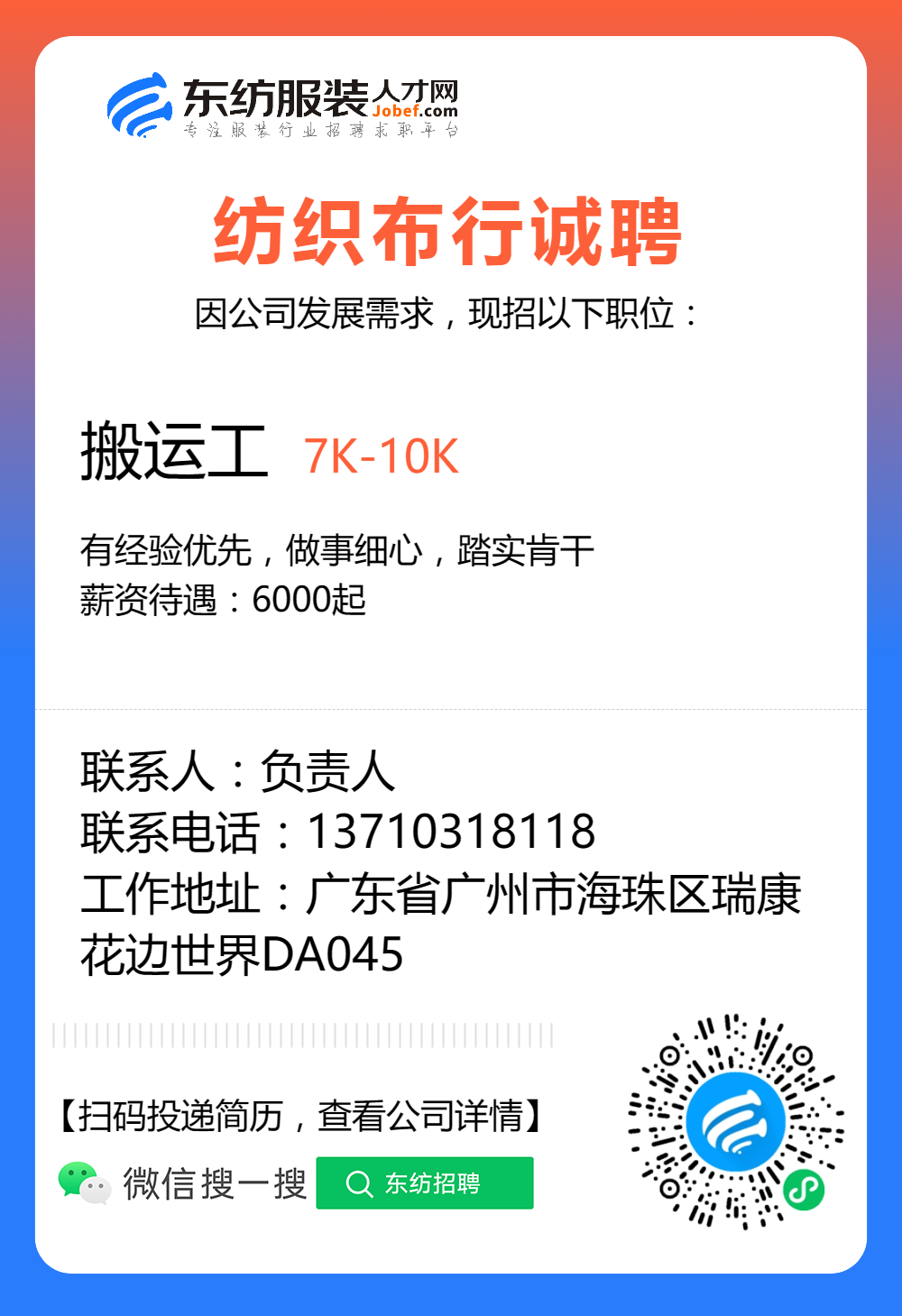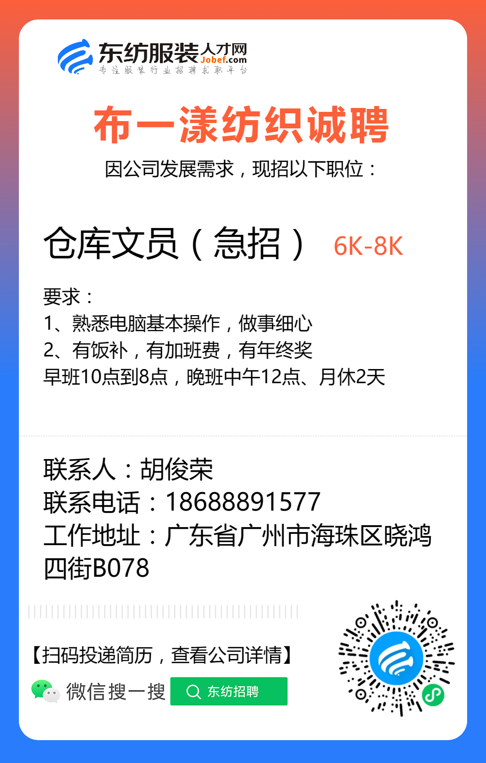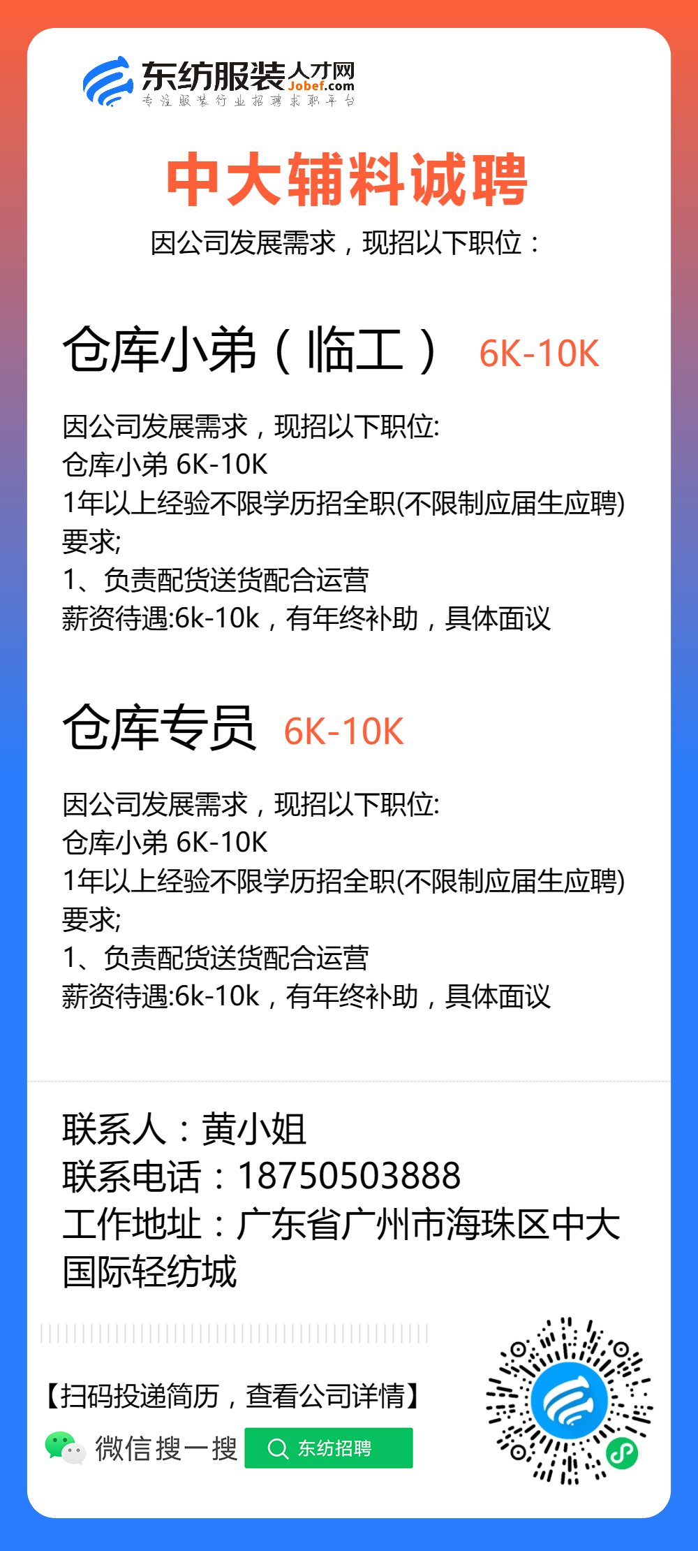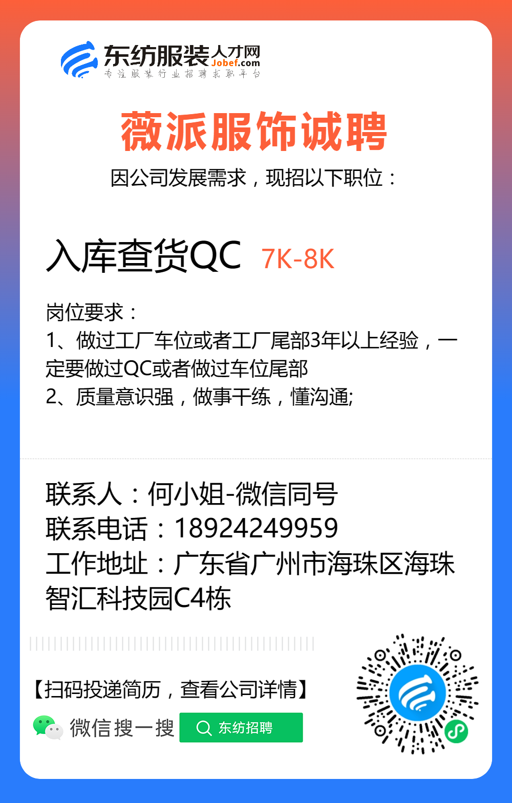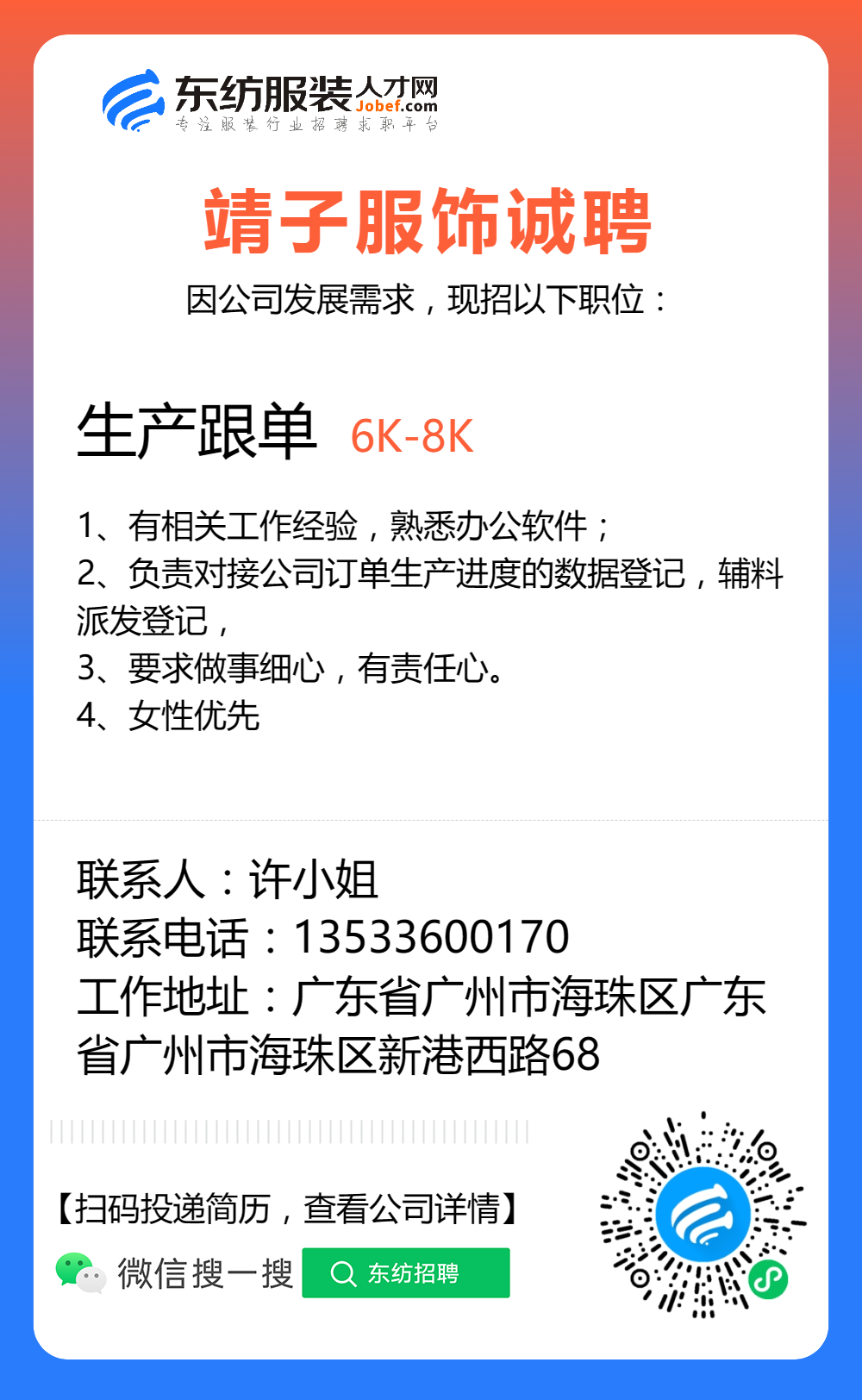 >服装招聘·工厂类丨3. 17号,跟单、采购、车位、裁床、尾部……