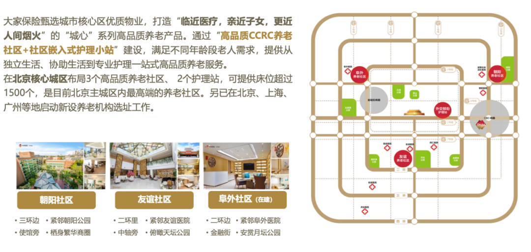 配置大家的养老金,给自己规划养老现金流的同时,还能拥有大家养老的养老社区居住权,主要包括旅居疗养、城心长居医养。
