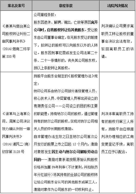 倘若平台公司的初始章程提前就员工离职情形下公司有权回购所涉股权进行约定的,因其体现了全体股东的一致意志,公司或第三人的主张通常会得到法院的支持。