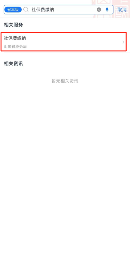 1、进入“爱山东”APP、微信、支付宝小程序,首页搜索“社保费缴纳”,点击进入;
