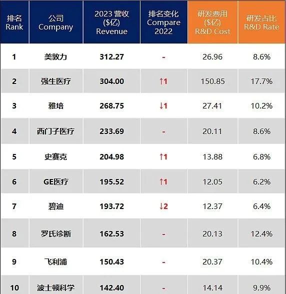 据2023年财报,美敦力仍是全球医疗器械企业营收第一。