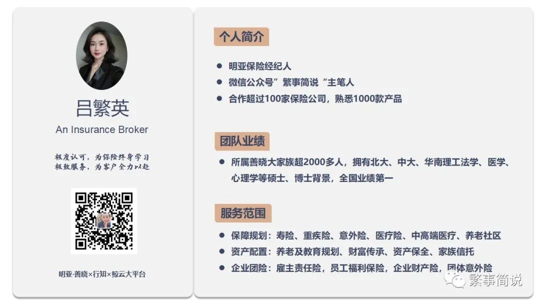 我是一名家庭财务规划师,也是一名风险管理师,客观 中立 专业是我的工作宗旨;终身学习是我对工作的热爱;温暖共情是我的人生追求~