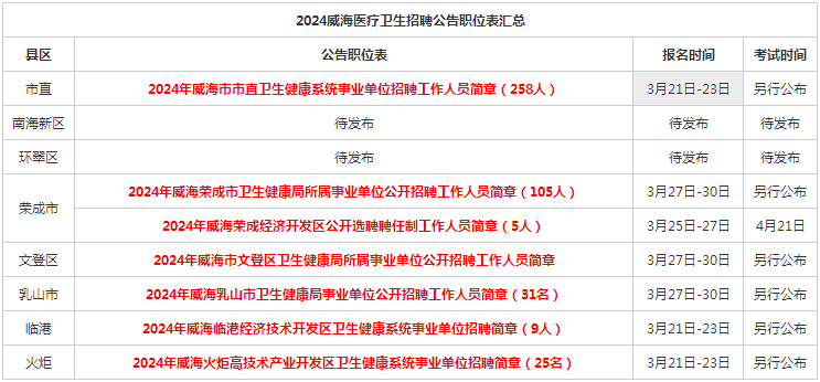 2024年威海市市直卫生健康系统事业单位公招聘工作人员简章(258人)