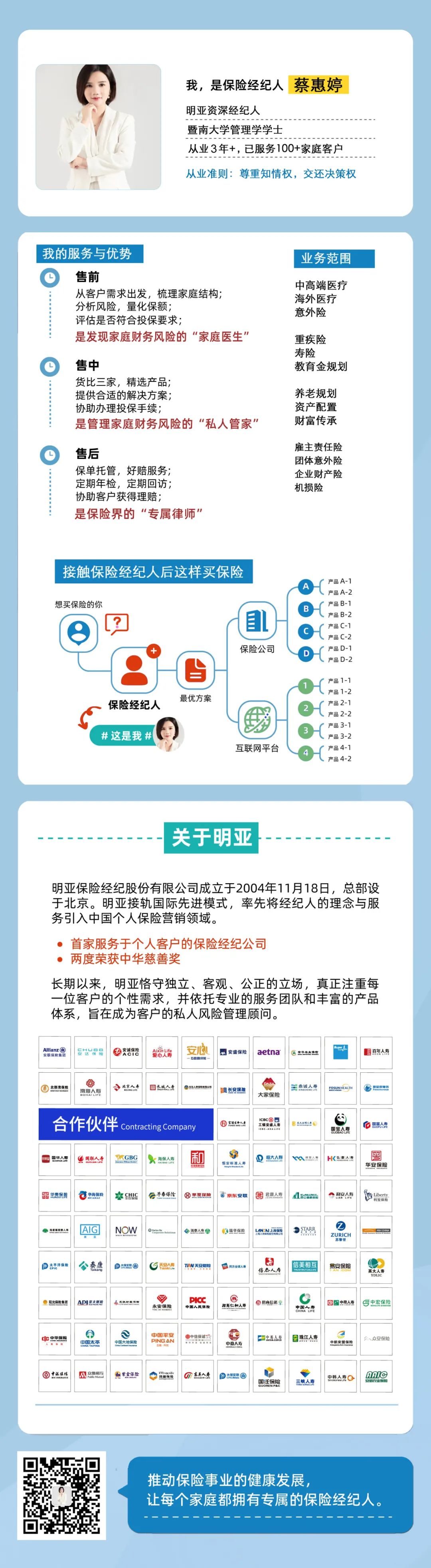 明亚资深保险经纪人,从业近4年,已服务客户500+,合作保司100+,熟悉市面上各险种产品分析对比,总能和你一起筛选定制专属方案。