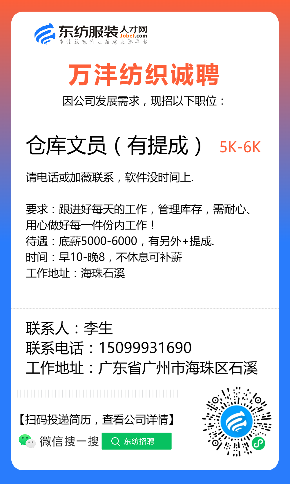 服装招聘·营销类丨3. 20号,销售员、文员、会计、档口小妹……