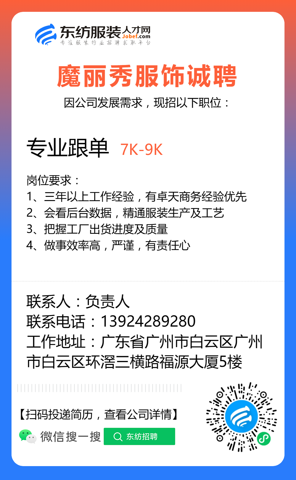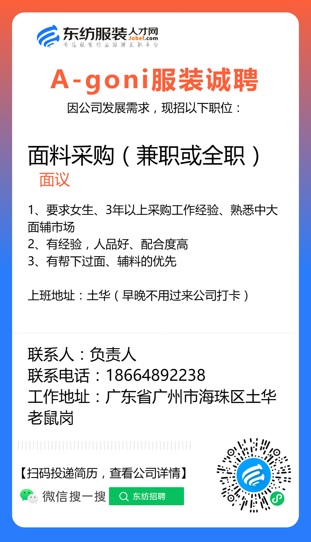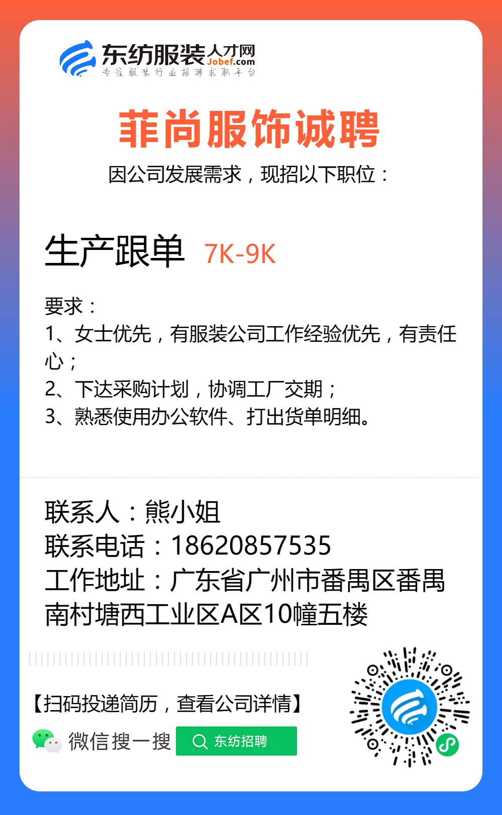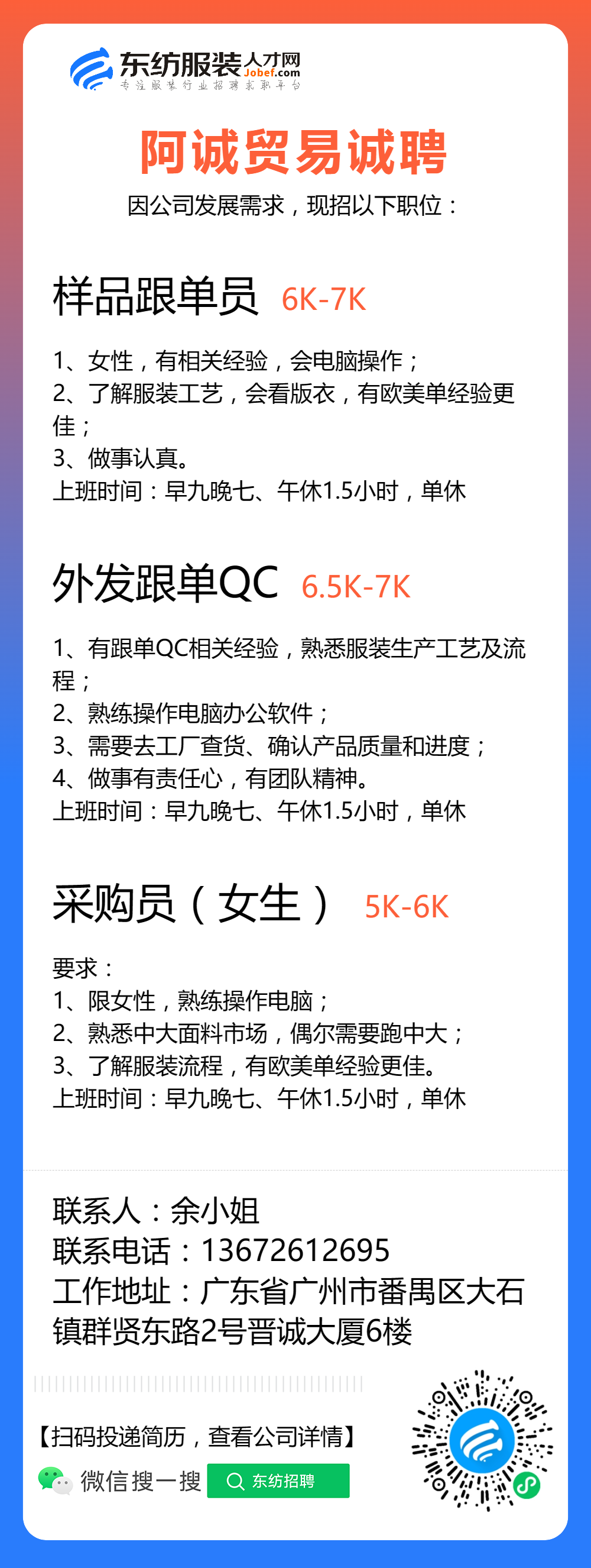 >服装招聘·工厂类丨3. 20号,跟单、采购、车位、裁床、尾部……