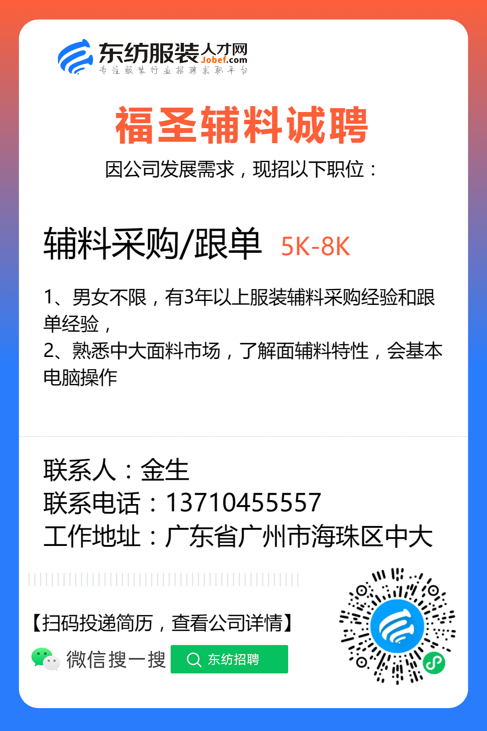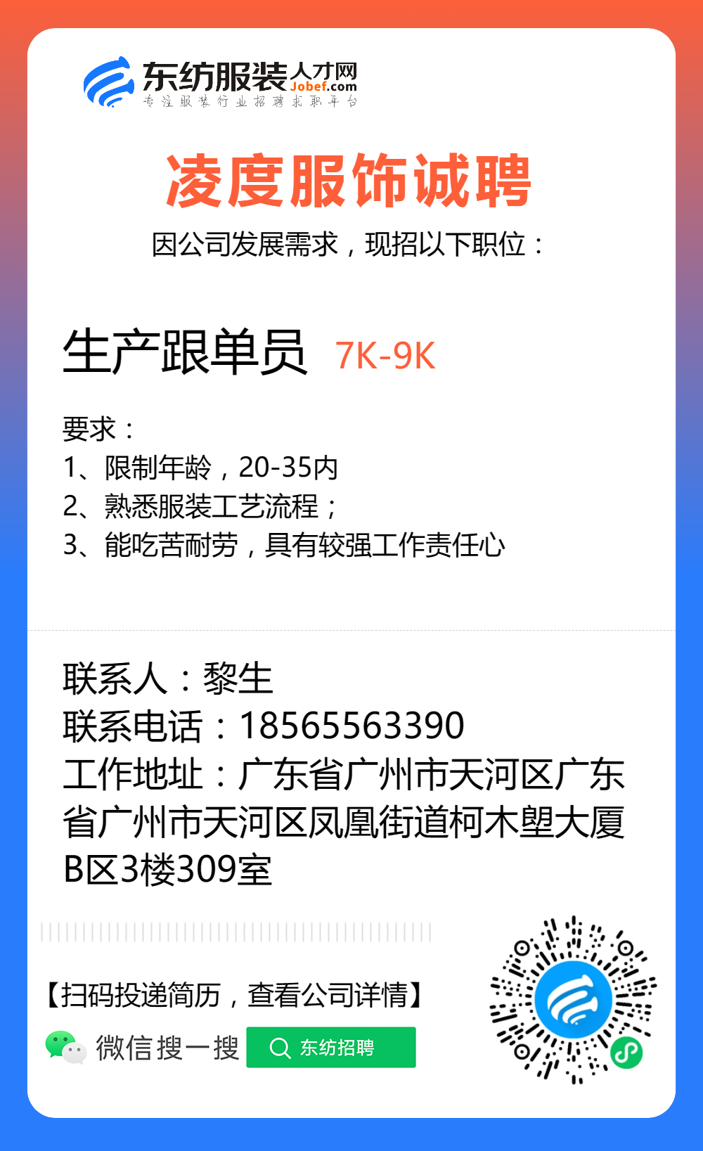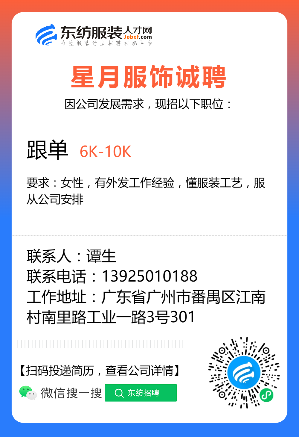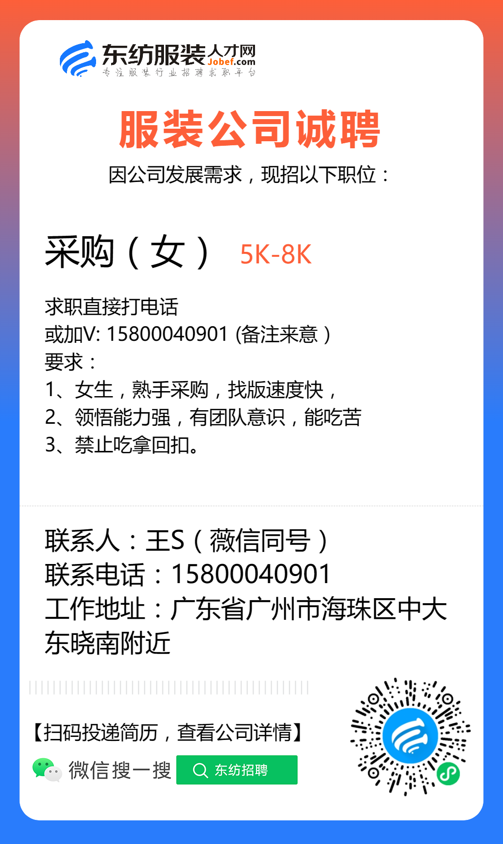 >服装招聘·工厂类丨3. 20号,跟单、采购、车位、裁床、尾部……