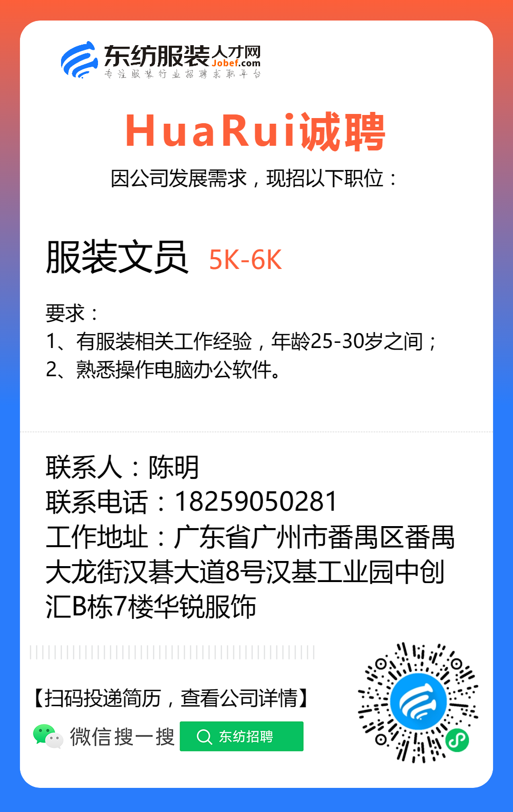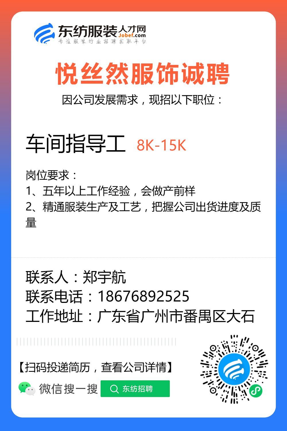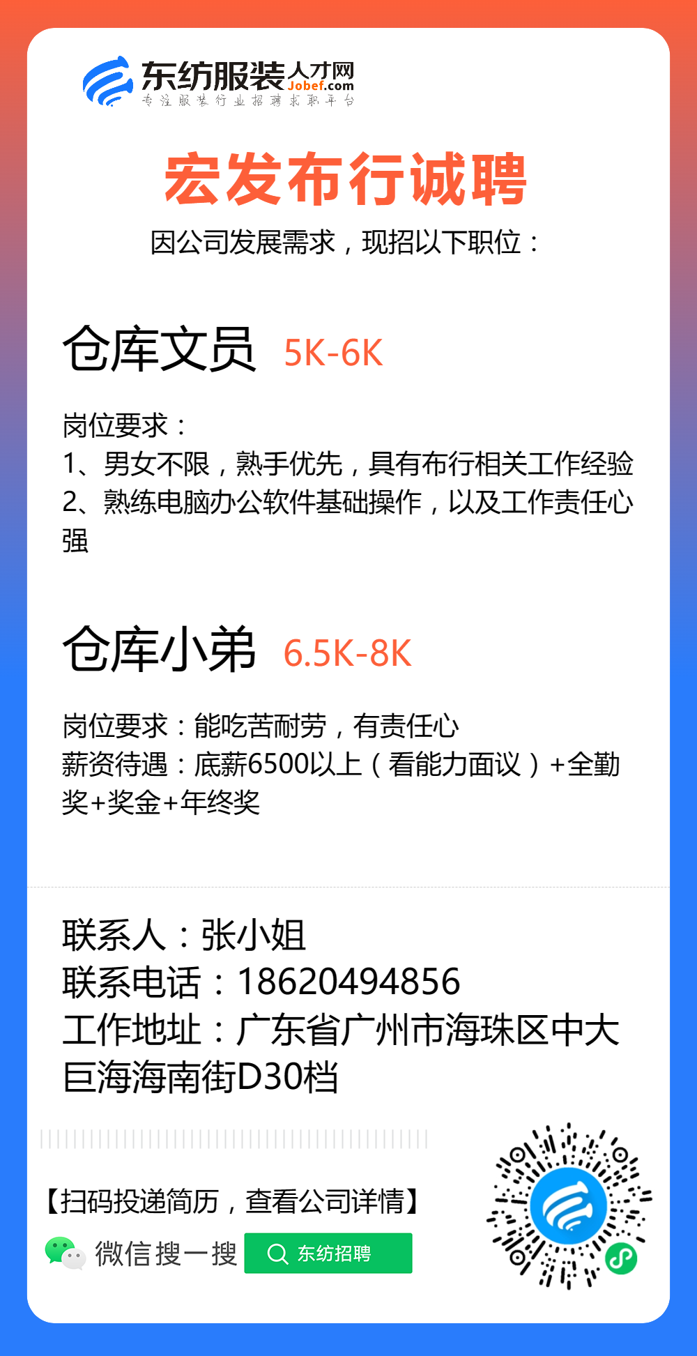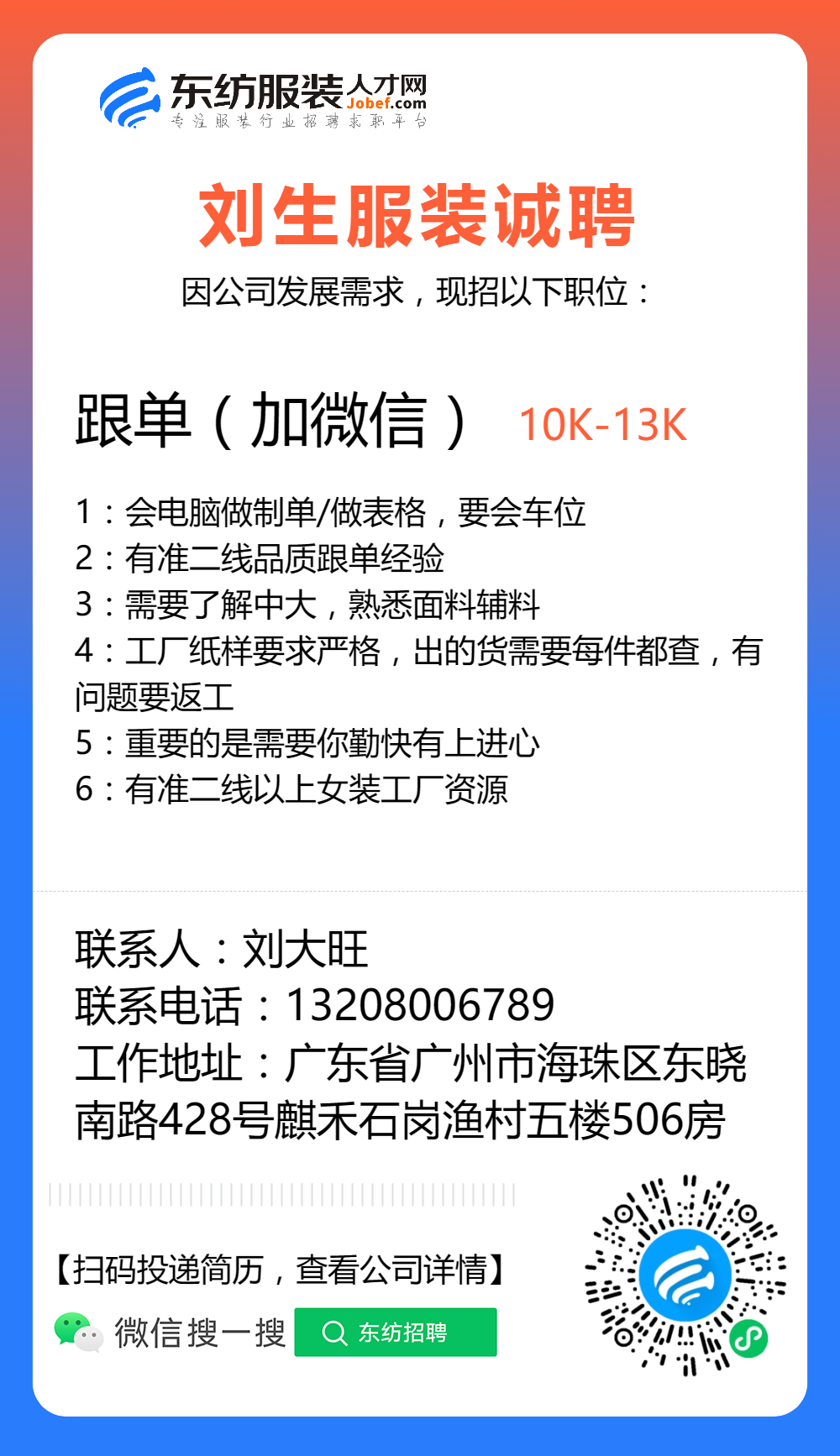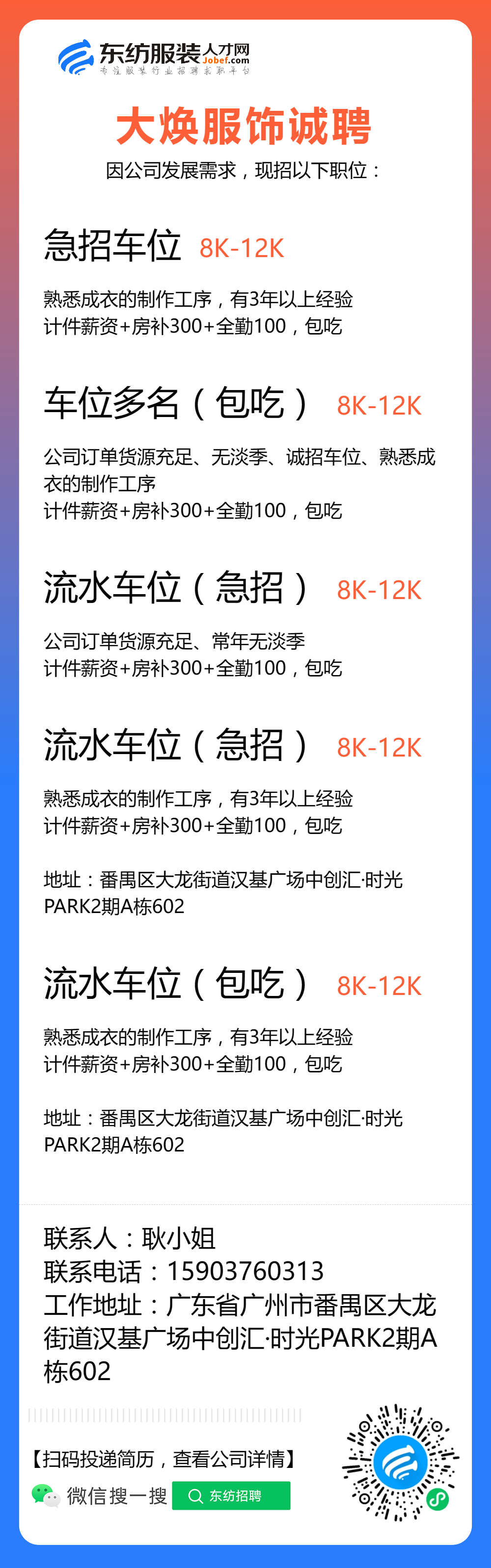 >服装招聘·工厂类丨3. 20号,跟单、采购、车位、裁床、尾部……