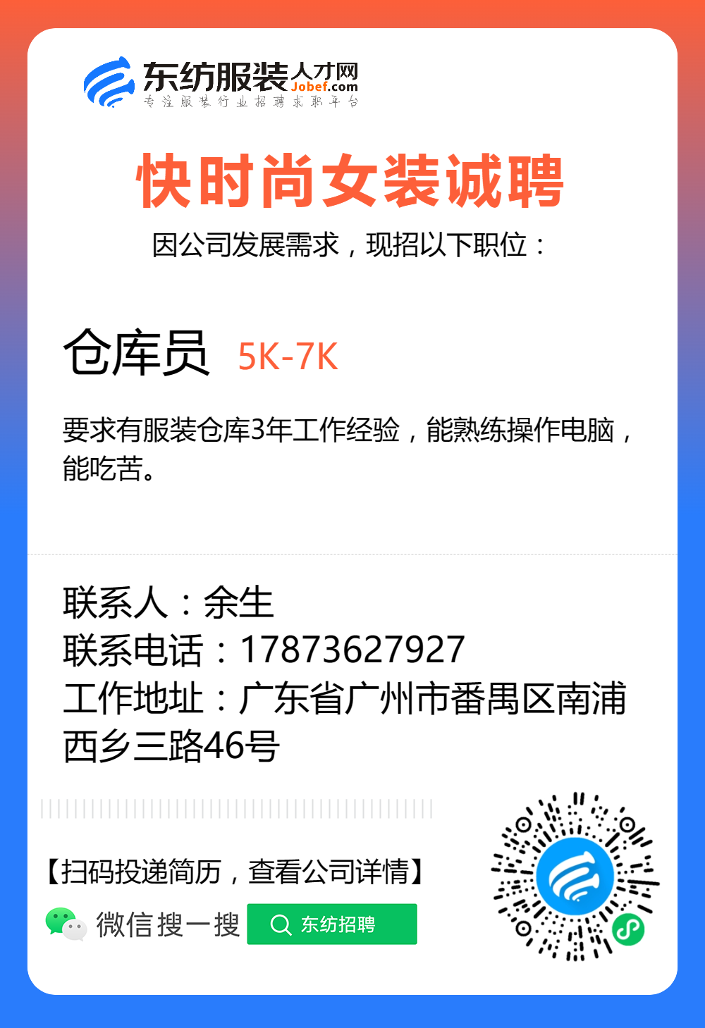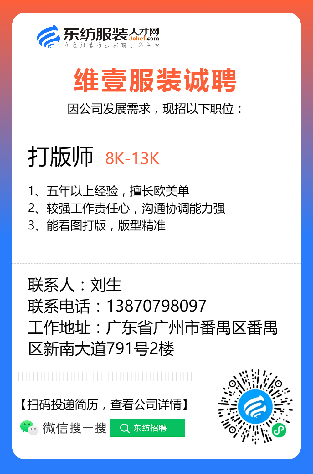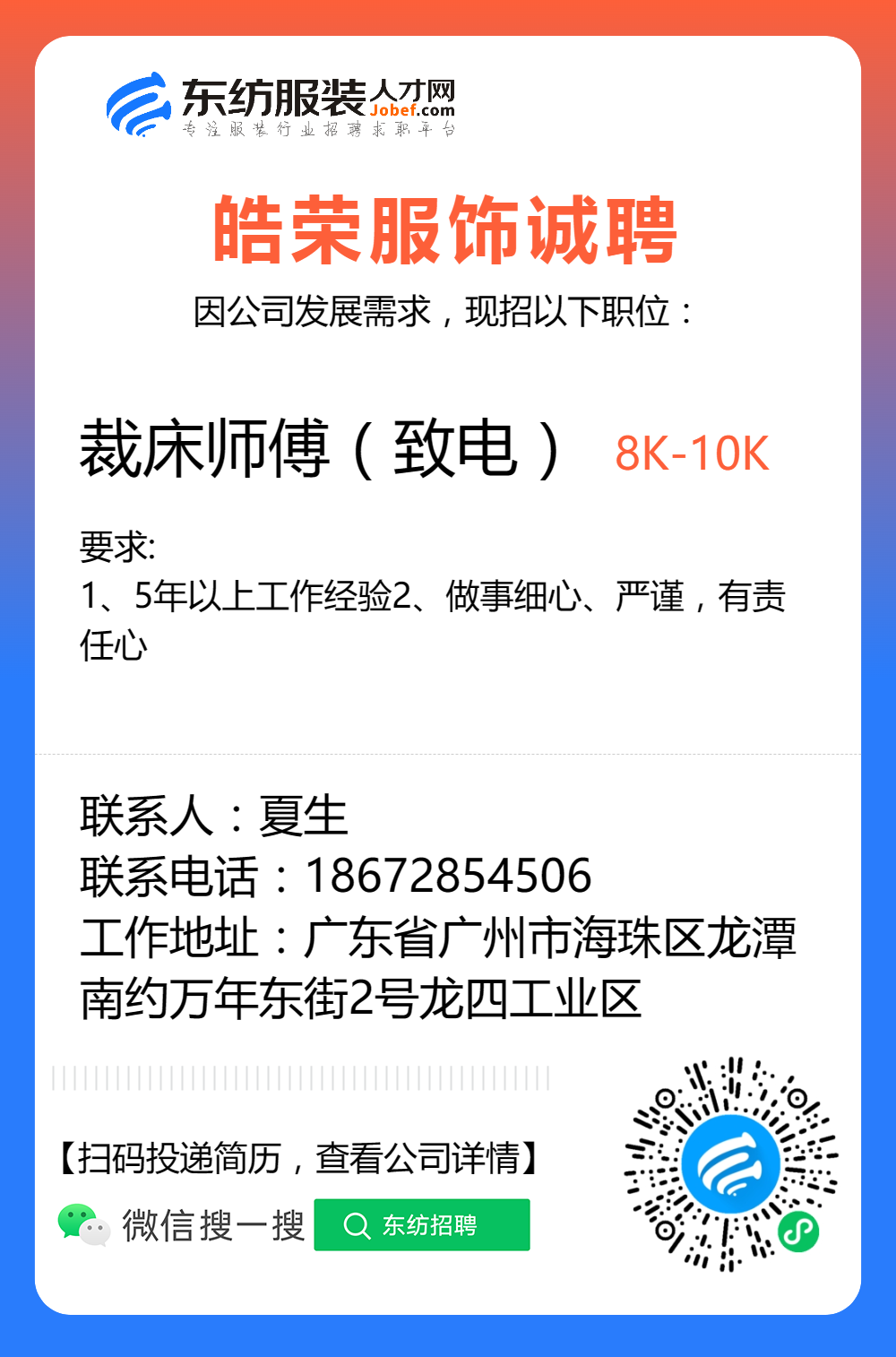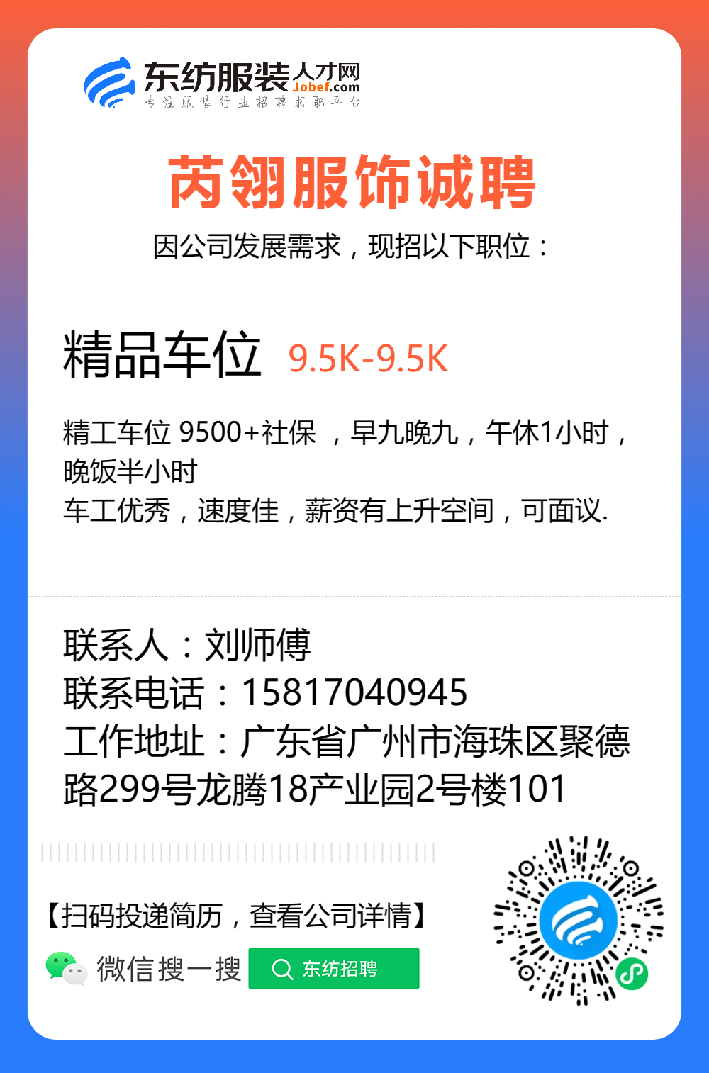 >服装招聘·工厂类丨3. 20号,跟单、采购、车位、裁床、尾部……
