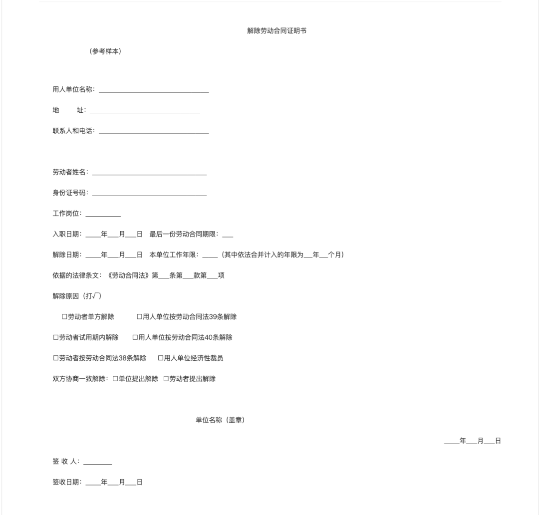 (5)向劳动者出具离职证明后一定要记得要劳动者签收并保留签收回执,避免今后劳动者主张未出具离职证明的赔偿要求。