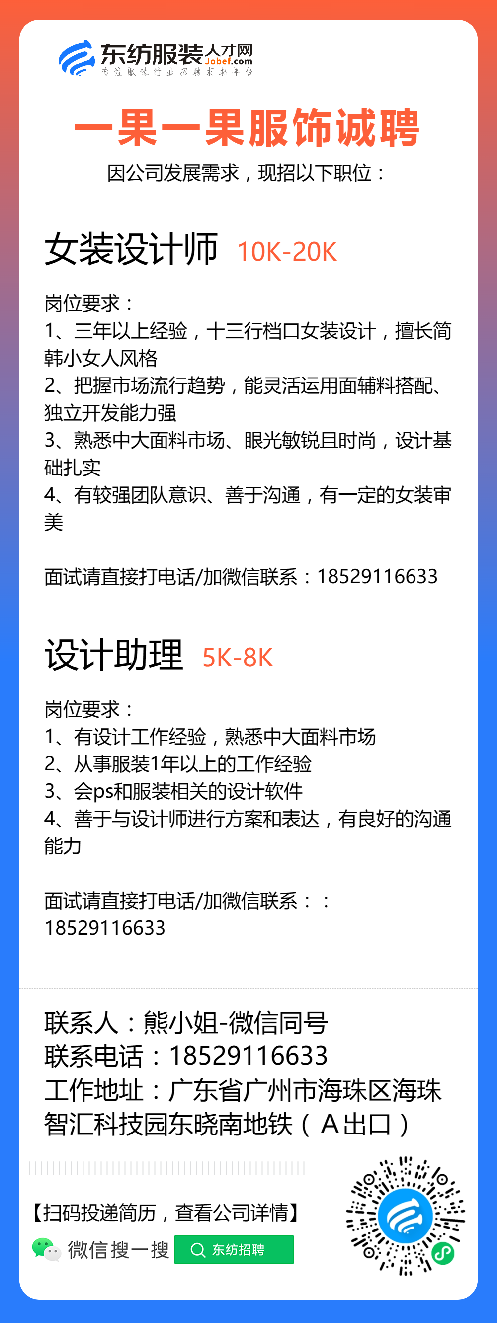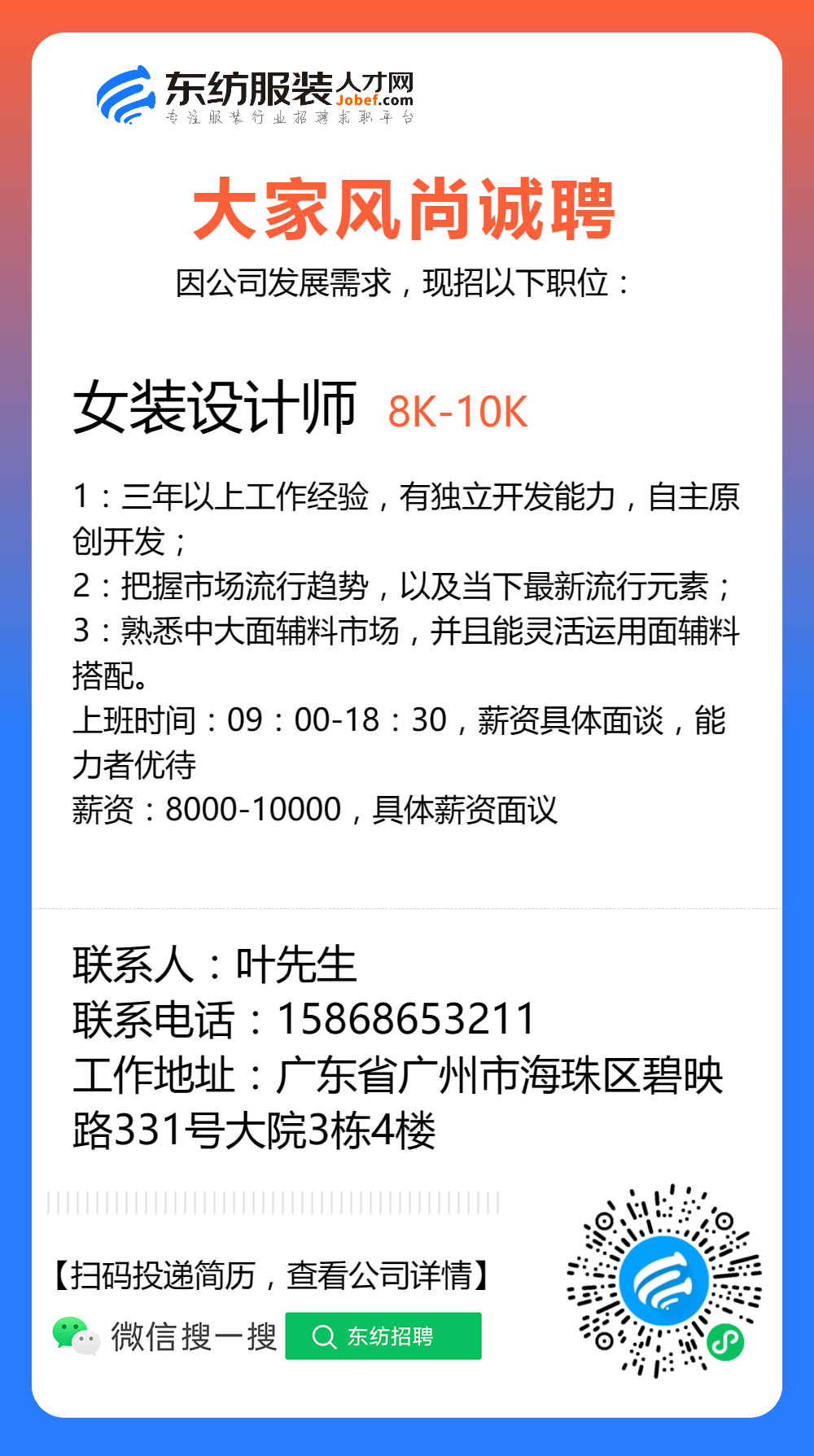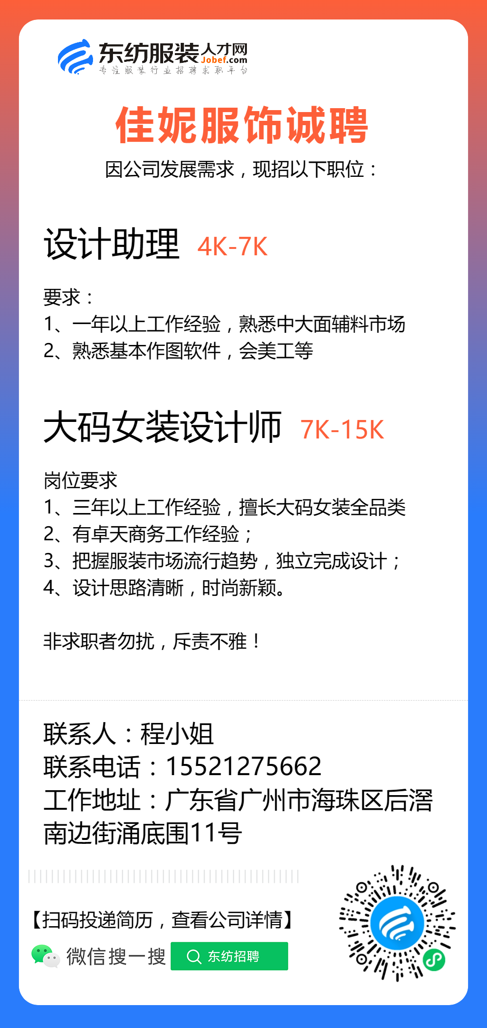 服装招聘·设计类丨3. 20号,女装设计师、男装设计师、童装设计师、设计助理.....