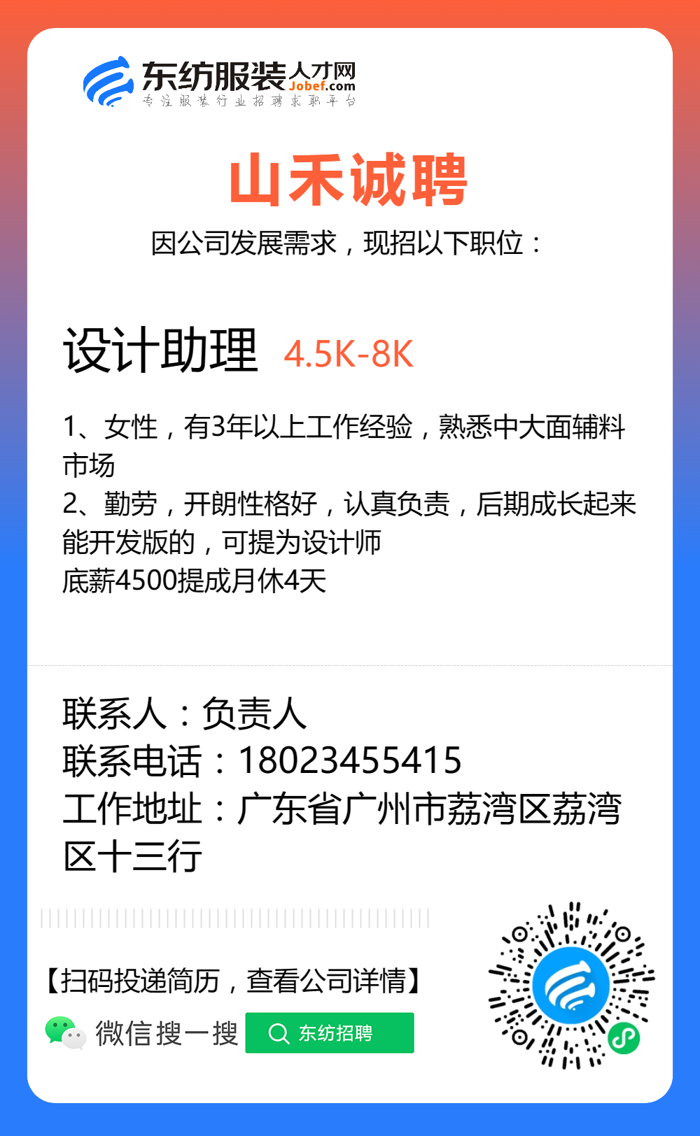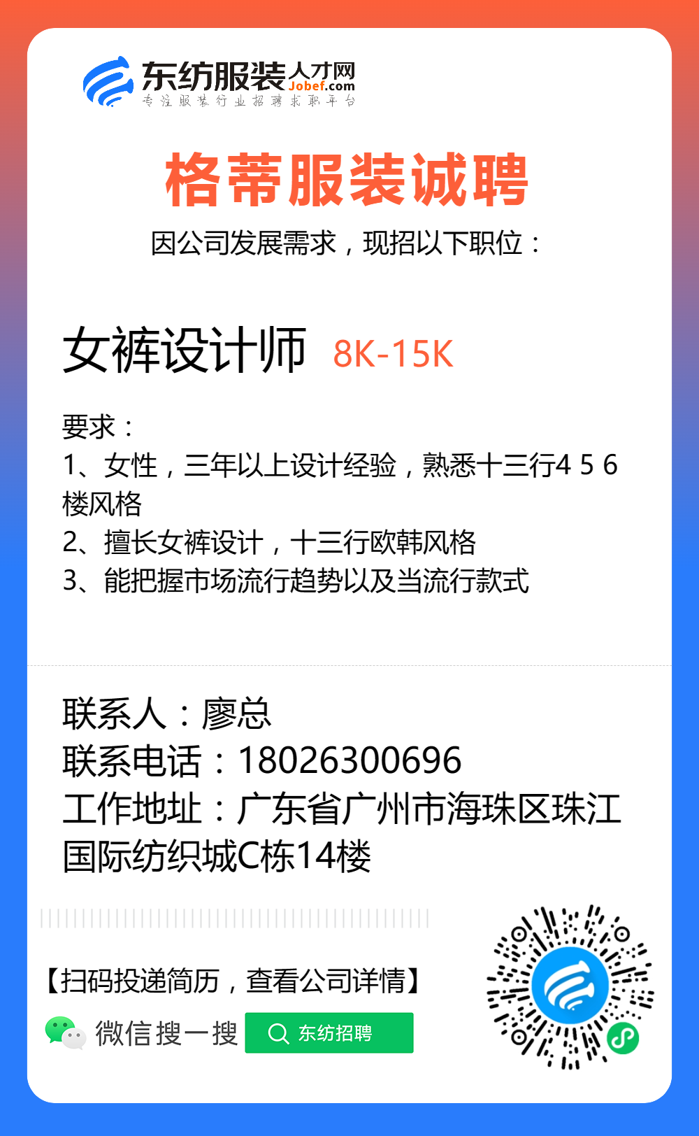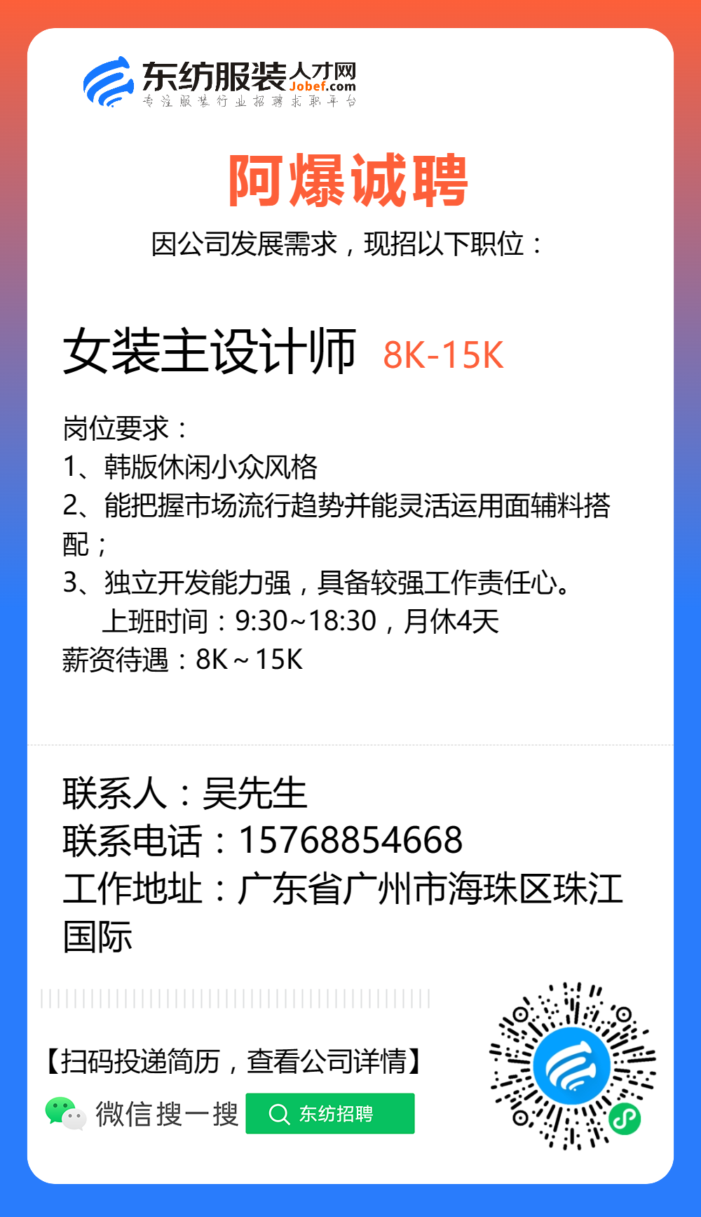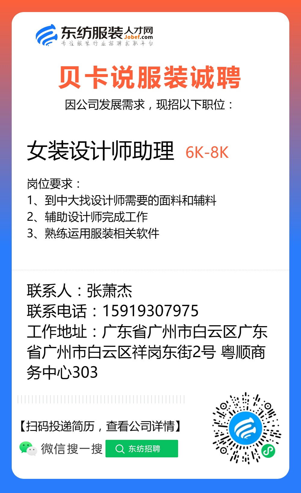 服装招聘·设计类丨3. 20号,女装设计师、男装设计师、童装设计师、设计助理.....