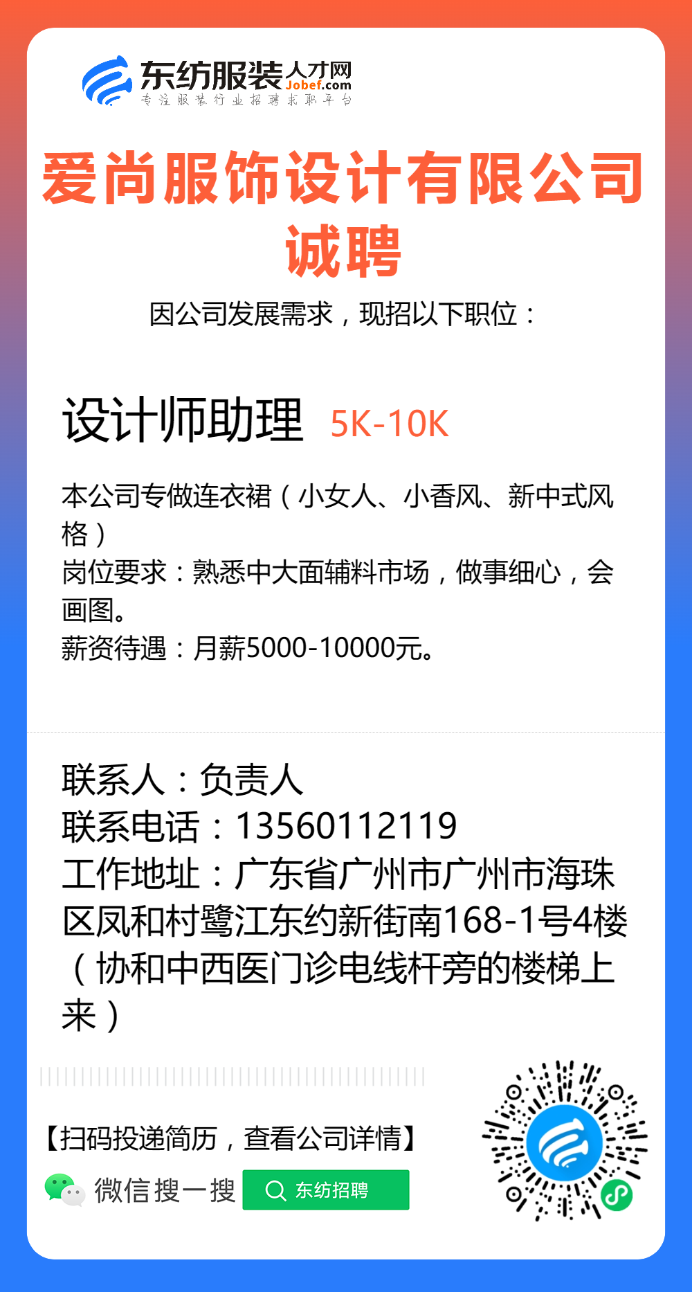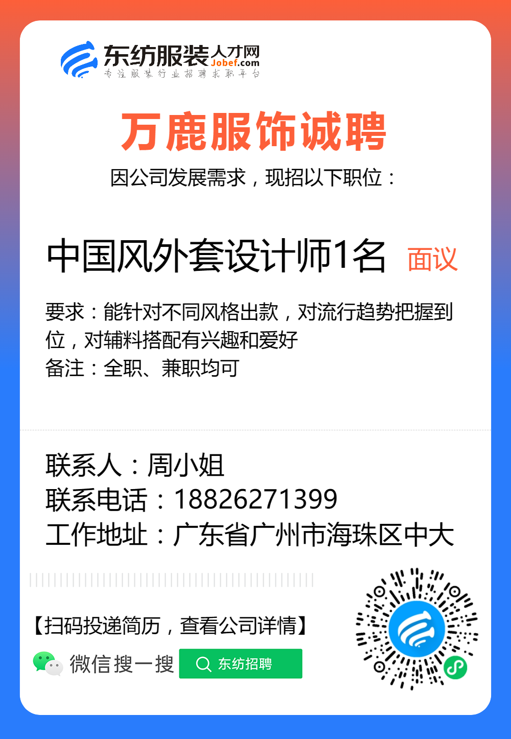 >服装招聘·设计类丨女装设计师、男装设计师、童装设计师、设计助理.....