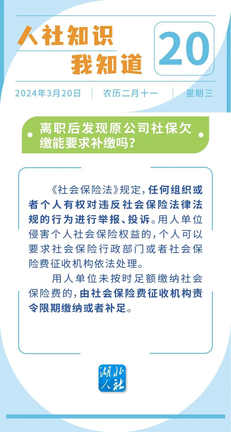 >【人社知识我知道】丨离职后发现原公司社保欠缴能要求补缴吗?