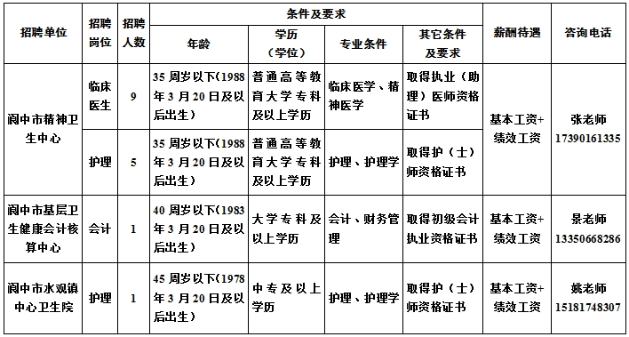 本次招聘如有调整、补充等事项,将在“健康阆中”微信公众号发布公告,应聘人员应主动查阅相关信息,同时确保联系方式正确、畅通。