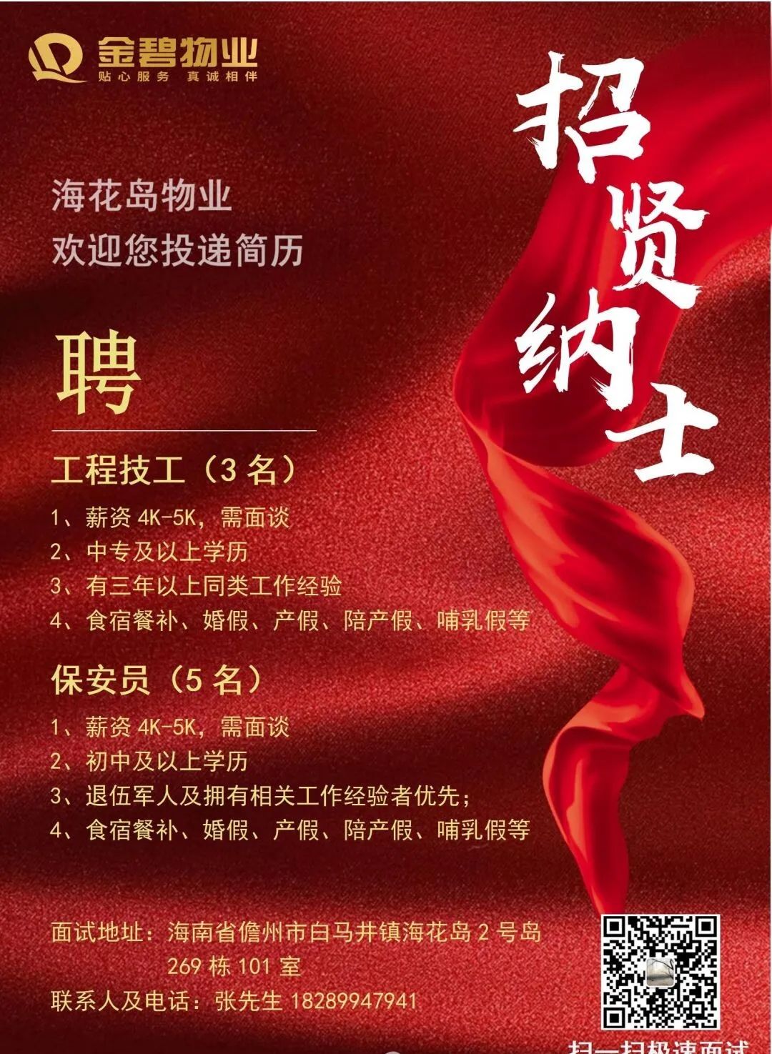>【海花岛】5K/月,食宿餐补,婚假等福利