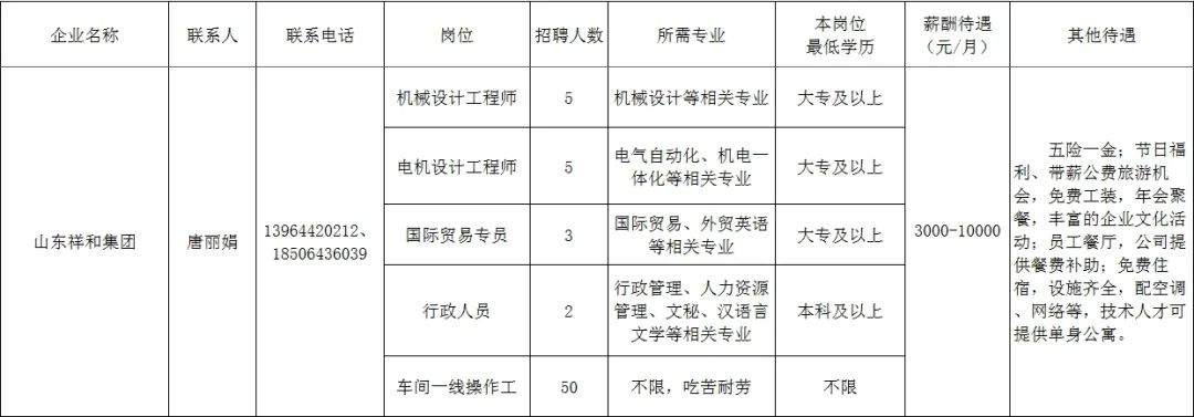 >博山招聘:五险一金;节日福利、餐补;免费住宿等!山东祥和集团招聘