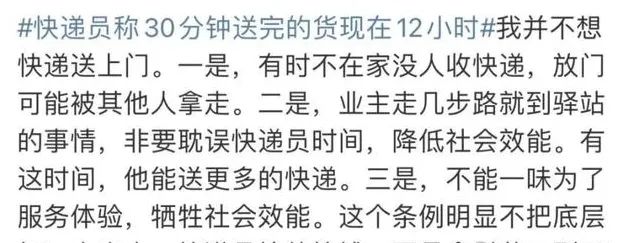 过去,人们对快递的期望往往是“今天寄明天到”,甚至是“30分钟送达”。然而,随着时效被拉长至12小时,用户和快递员都感受到了巨大的变化。快递员离职潮愈演愈烈,工作强度增加,而收入却微薄,导致了离职动力的增强。同时,用户对快递服务的期望也急剧下降,滞留在服务站的快递和漫长的等待时间导致了用户满意度的下降。
