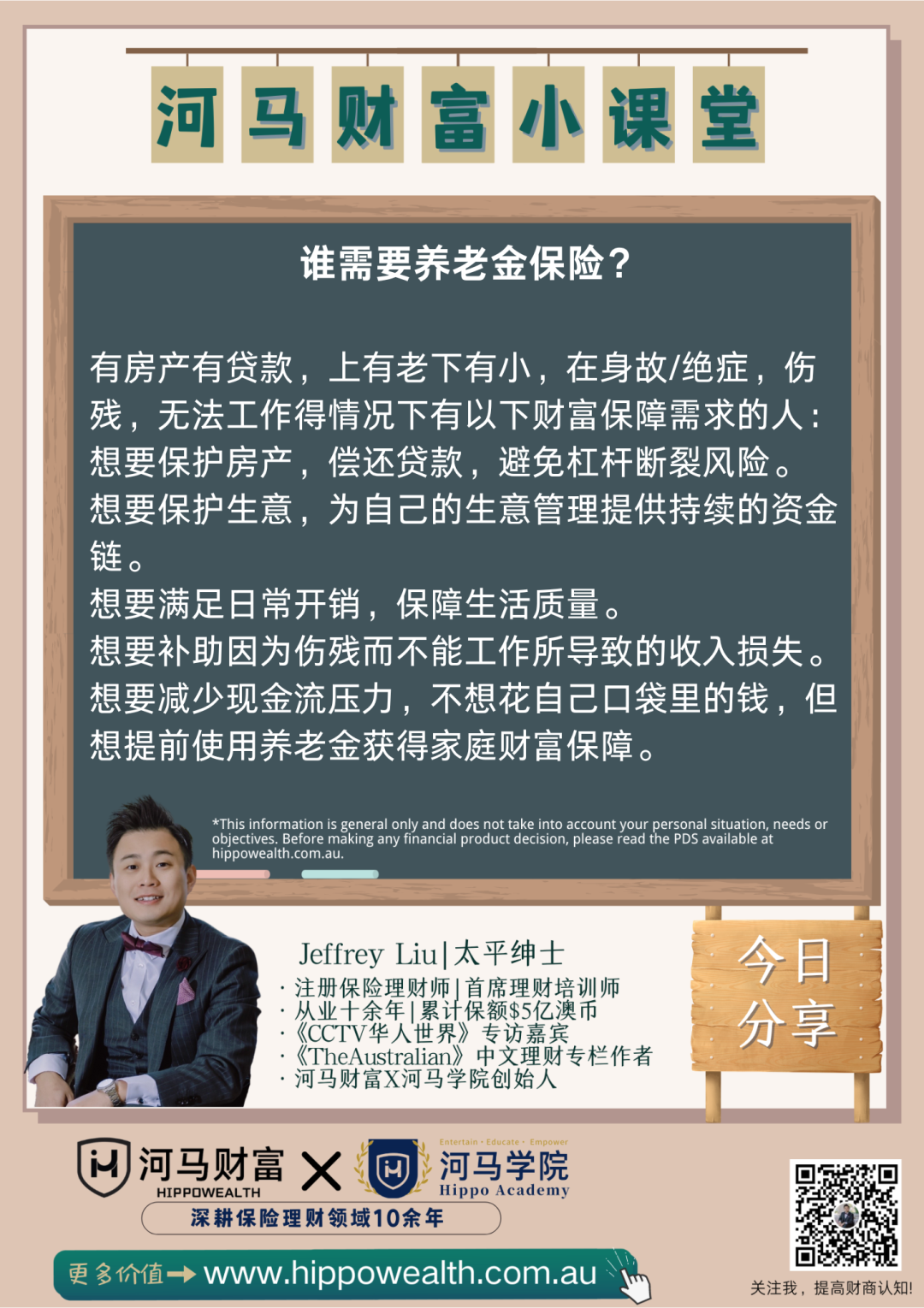 除此之外,在一些有限的特殊情况下,退休前也可以使用养老金,例如,经济极度困难,永久离开澳洲,或永久残疾等。
