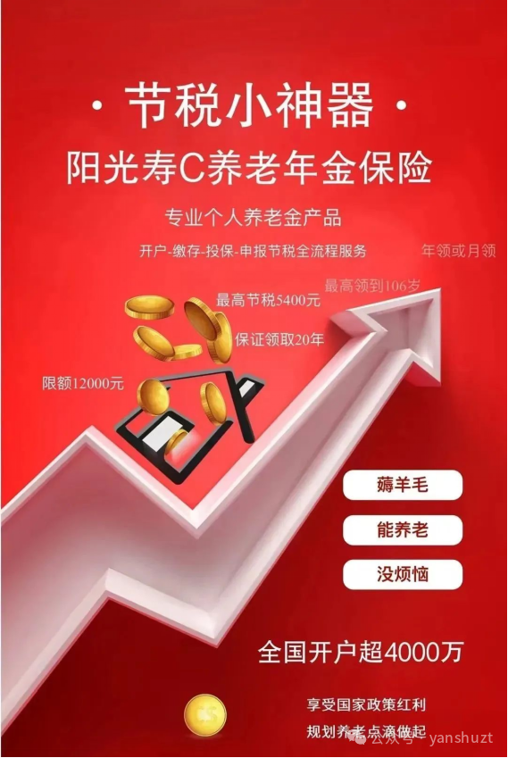 今天来分享一款可以抵税的个人养老金保险——阳光人寿阳光C款养老年金保险(个养版)。