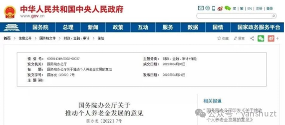 2022年4月 国务院办公厅印发《关于推动个人养老金发展的意见》,标志个人养老金制度正式出炉立足我国的基本国情,借鉴国际经验,努力构建以基本养老为基础、以企业年金和职业年金为补充,与个人储蓄性养老保险和商业养老保险相衔接的“三支柱”养老保险体系。
