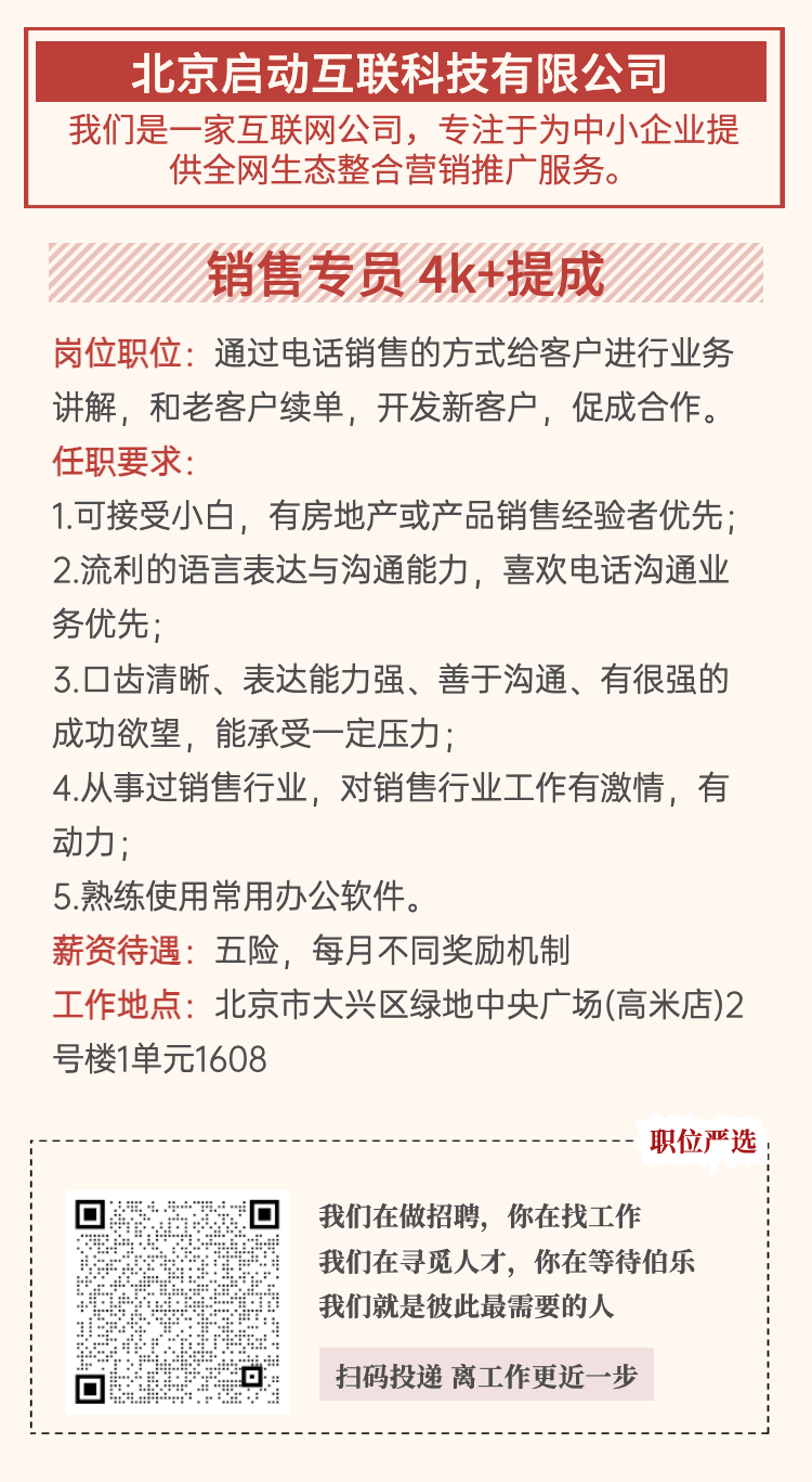 >【职位严选】五险一金+交通补助+餐补…大兴这些岗位等你投简历