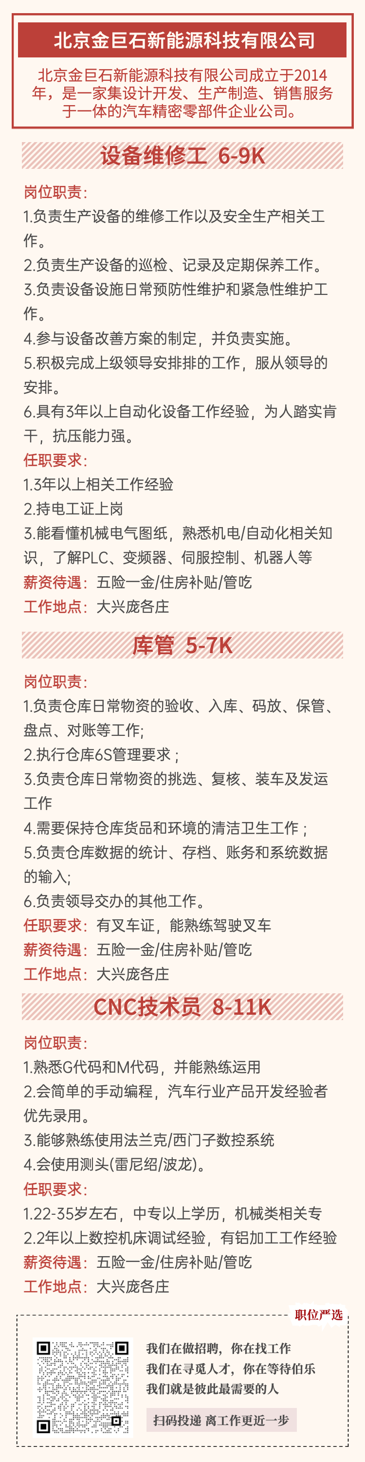 【职位严选】五险一金+交通补助+餐补…大兴这些岗位等你投简历