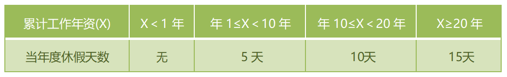 休假天数:15天/年(新入职员工以当年在职天数折算)