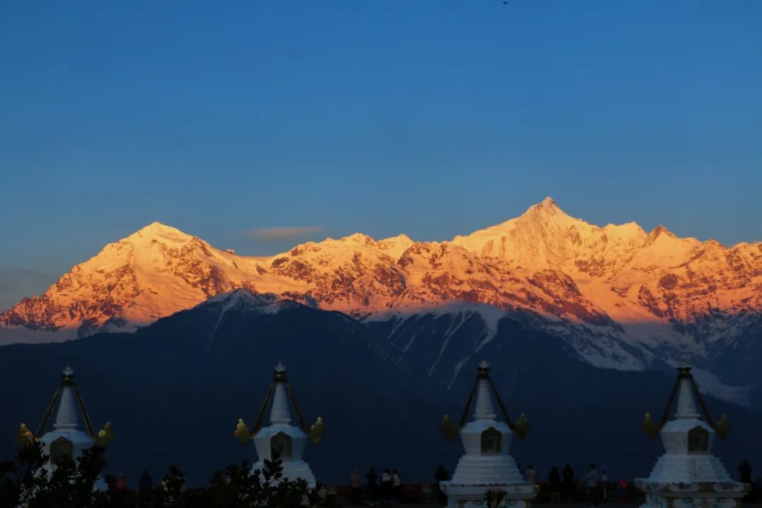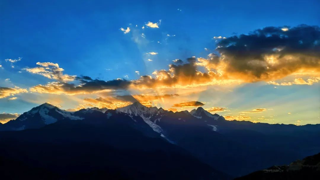 当融金灿烂的阳光刺破云层倾洒向梅里雪山,卡瓦博格由暗变亮,整个雪山顶散发着万丈光芒,世间万物顿失颜色,只有那震撼的日照金山,是不少人一生的追求,也是唯一的绝色。