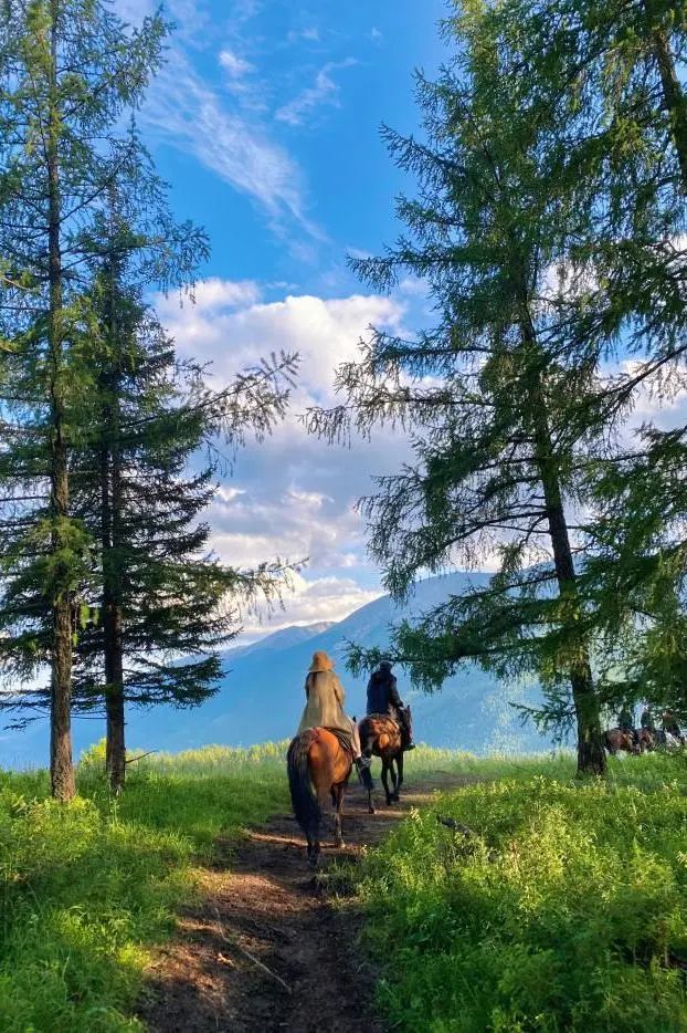 生活于此,穿行于木屋古树之中,牛羊散落,骏马从眼前奔腾而过,有鹰划破碧蓝的天空,飞向密林之巅的雪山,在图瓦人的炊烟中,感受生活的安详……