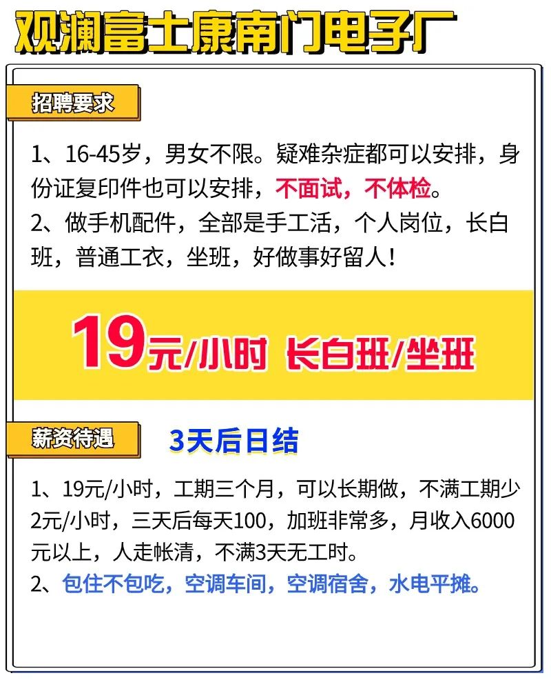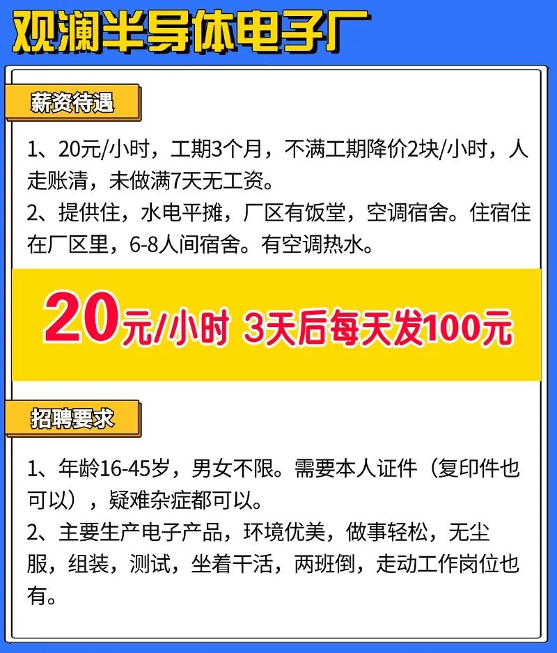 >纯底薪4300元+加班37元/时!免费体检+厂内宿舍+不过安检,天天领薪/独立岗位为主,少量长白班!