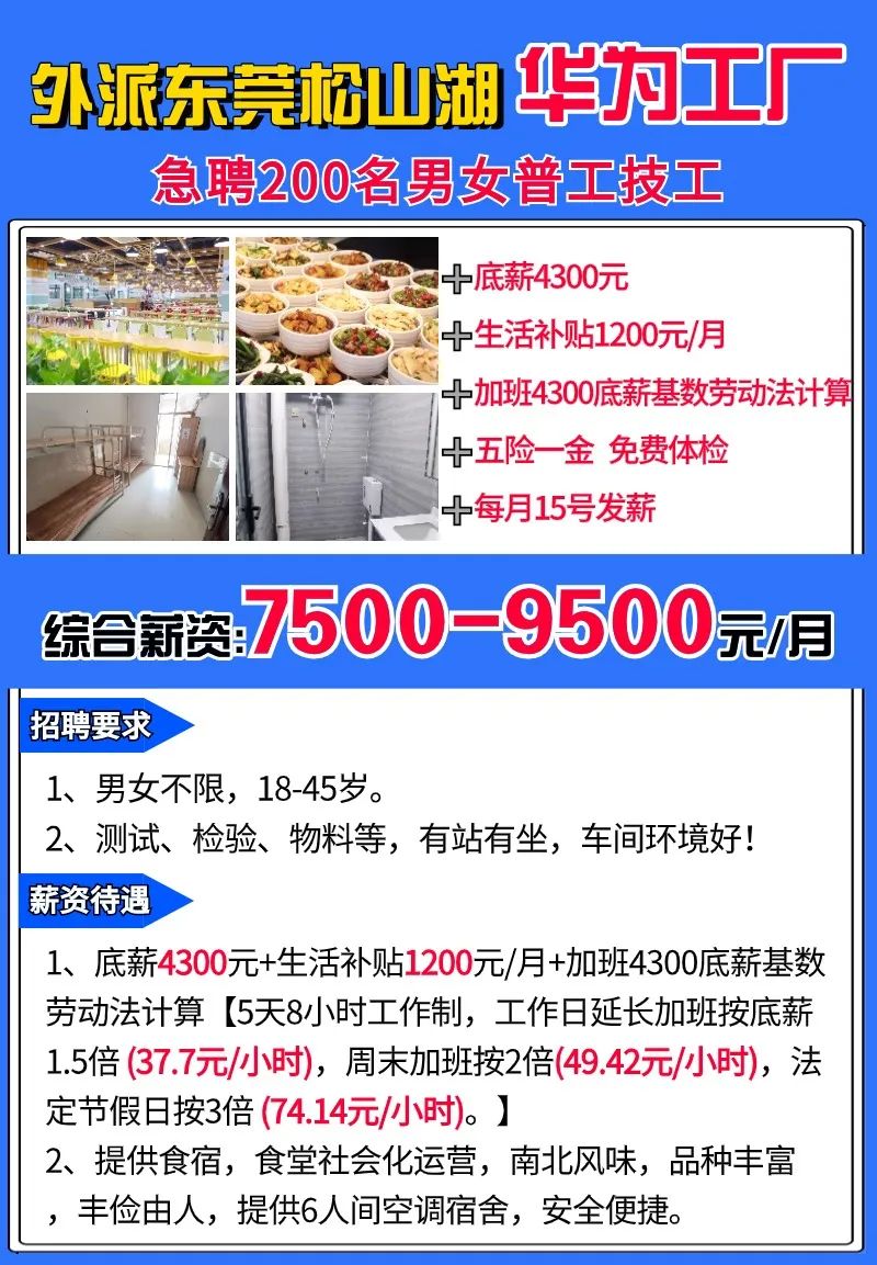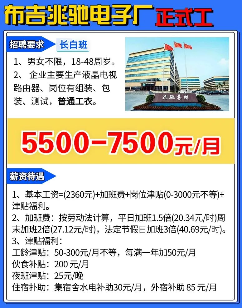 纯底薪4300元+加班37元/时!免费体检+厂内宿舍+不过安检,天天领薪/独立岗位为主,少量长白班!
