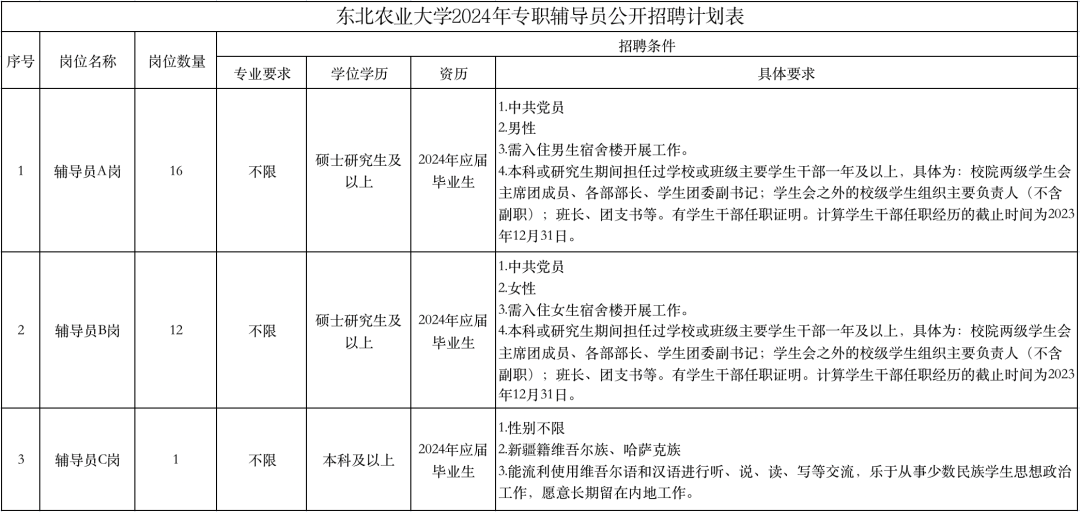 (1)《东北农业大学2024年公开招聘辅导员报名表》3份。