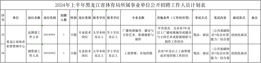 招聘采用发布公告、网上报名、网上资格审查、缴费及打印准考证、考试、考核、体检、公示、聘用的方式进行。招聘公告在黑龙江省事业单位公开招聘服务平台(网址:http://gkzp.renshenet.org.cn/)、黑龙江省体育局官方网站(网址:http://tyj.hlj.gov.cn/)发布。1.报名时间:2024年4月1日9时至4月3日17时,逾期不再受理。2.报名方式:本次招聘采取网上报名方式,不接受现场报名。应聘者登录网上报名系统按照要求报名。(http://zpks.gprcw.com/index.php/exam/?EXAMID=2707)(1)应聘人员只允许报考1个岗位,同时报考2个及以上招聘岗位的,取消该应聘人员报考所有岗位的资格。(2)应聘人员须使用本人有效居民身份证进行报名,要认真阅读《诚信承诺书》,真实、准确、完整提交个人信息和相关材料。资格审查贯穿公开招聘全过程,任何环节发现应聘人员不符合资格条件的,均应取消应聘或者聘用资格。(3)我省项目生(“三支一扶”“大学生志愿服务西部计划”“村村大学生计划”“农村义务教育阶段学校教师特设岗位计划”“选聘高校毕业生到村任职”等)、城乡基层公益性岗位人员、普通高等学校毕业入伍退役大学生士兵(含毕业当年上半年入伍且符合毕业条件人员)等享受笔试政策性加分人员应在报名填报信息时如实填写加分项,否则视为自动放弃,同时符合多项加分条件的,只取其中一个最高加分项,不累计加分。招聘单位于2024年4月1日9时至4月3日17时、2024年4月7日9时至4月8日17时期间对报考申请进行网上审查。应聘人员可登录报名网站查询资格审查结果。通过资格审查的,不能再报考其他岗位;2024年4月3日17时前报考申请未审查或未通过资格审查的,可改报其他岗位。2024年4月3日17时以后,报考申请未审查或者未通过资格审查的,不能改报其他岗位。1.考试费用。按照省财政厅、省发改委《关于省直事业单位公开招聘工作人员考试继续收取考试费的通知》(黑财税〔2020〕3号)规定,笔试考试收费标准为每人45元。2.缴费方式。通过网上资格审查的考生,可于2024年4月1日9时至4月3日17时、2024年4月7日9时至4月9日17时期间登录报名网站进行缴费。未在规定时间内完成网上缴费的,视为自动放弃报考资格。缴费人数与岗位招聘人数之比原则上不得低于3:1。达不到这一比例的,按规定可减少该岗位的招聘人数或者取消该岗位的招聘。原报考岗位被取消的,应聘人员可在规定时间内改报其他符合报名条件的岗位,只能改报1次。报考人员应于4月10日及时关注“黑龙江省体育局官方网站”,查看报考岗位是否缩减招聘人数或被取消。岗位被取消的,应按网上通知要求在规定的时限内完成改报,未按期完成改报,视为自动放弃报考资格。3.打印准考证。缴费成功的考生需打印准考证方可参加招聘考试,打印笔试准考证时间将在黑龙江省体育局官方网站通知,考生应在规定时间内登录报名系统自行打印准考证并仔细核对准考证上的相关信息。笔试时间、地点等有关事宜以笔试准考证为准。长按二维码查看招聘信息