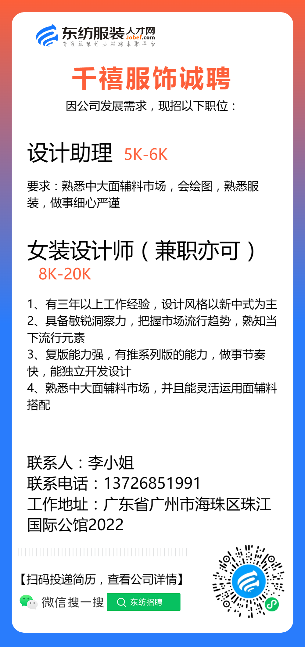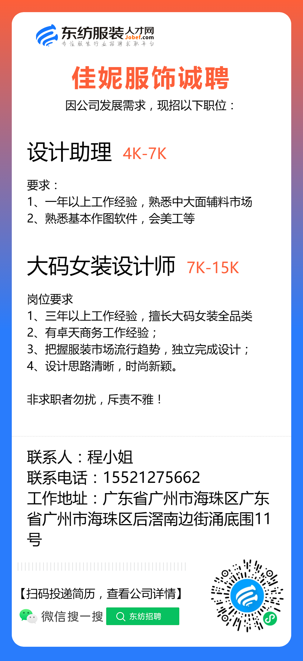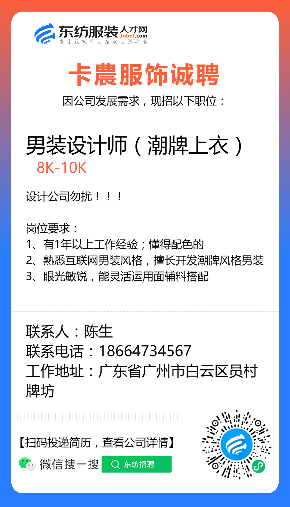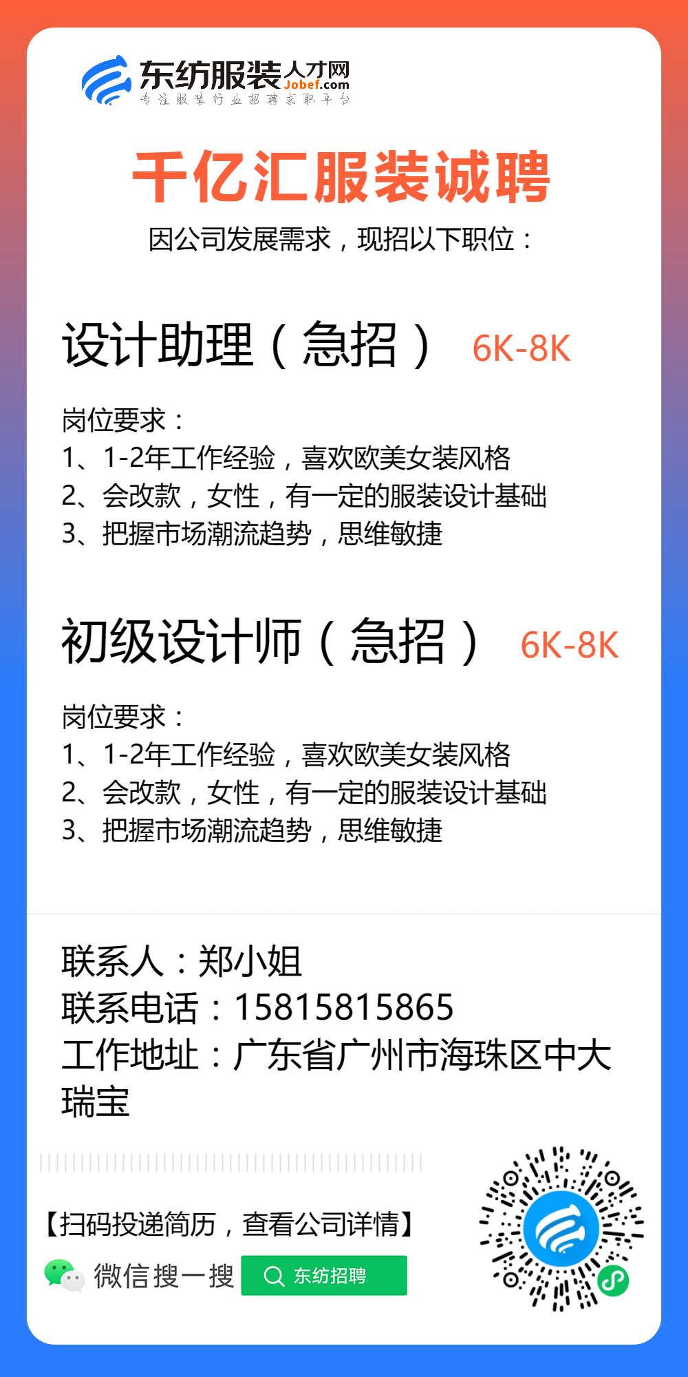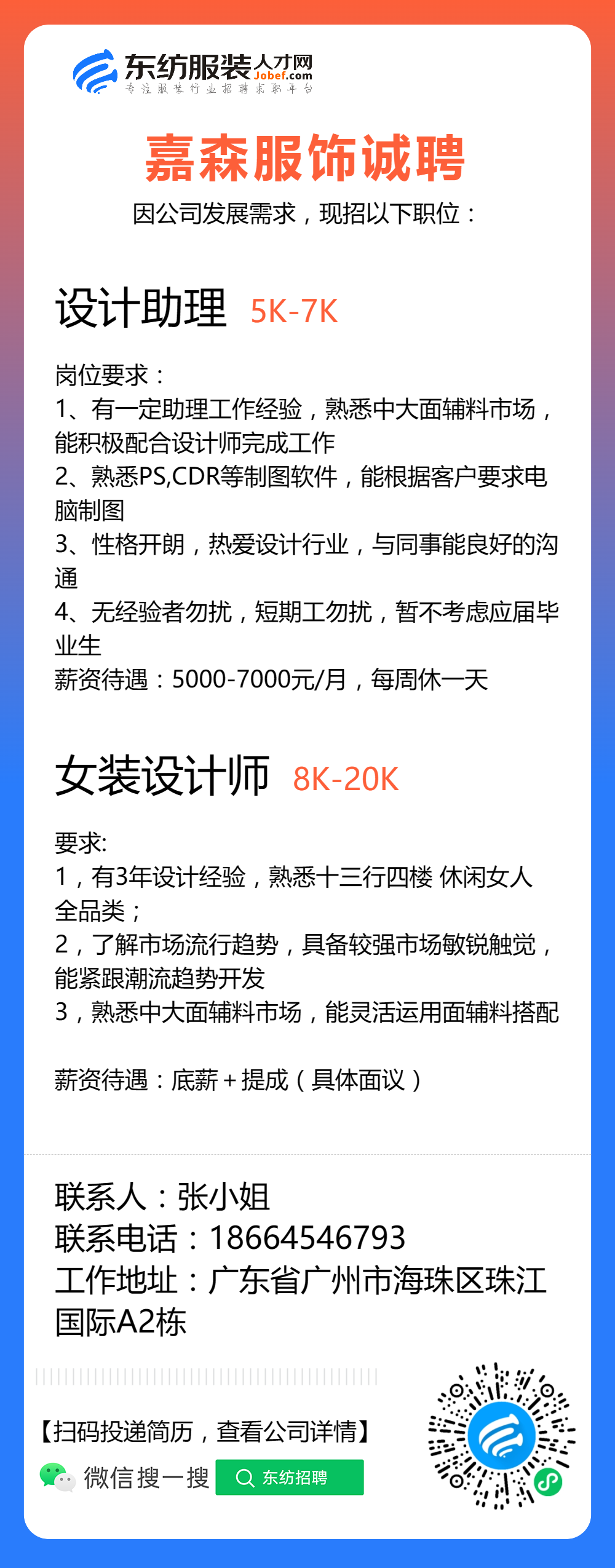 >服装招聘·设计类丨3. 23号,女装设计师、男装设计师、童装设计师、设计助理.....
