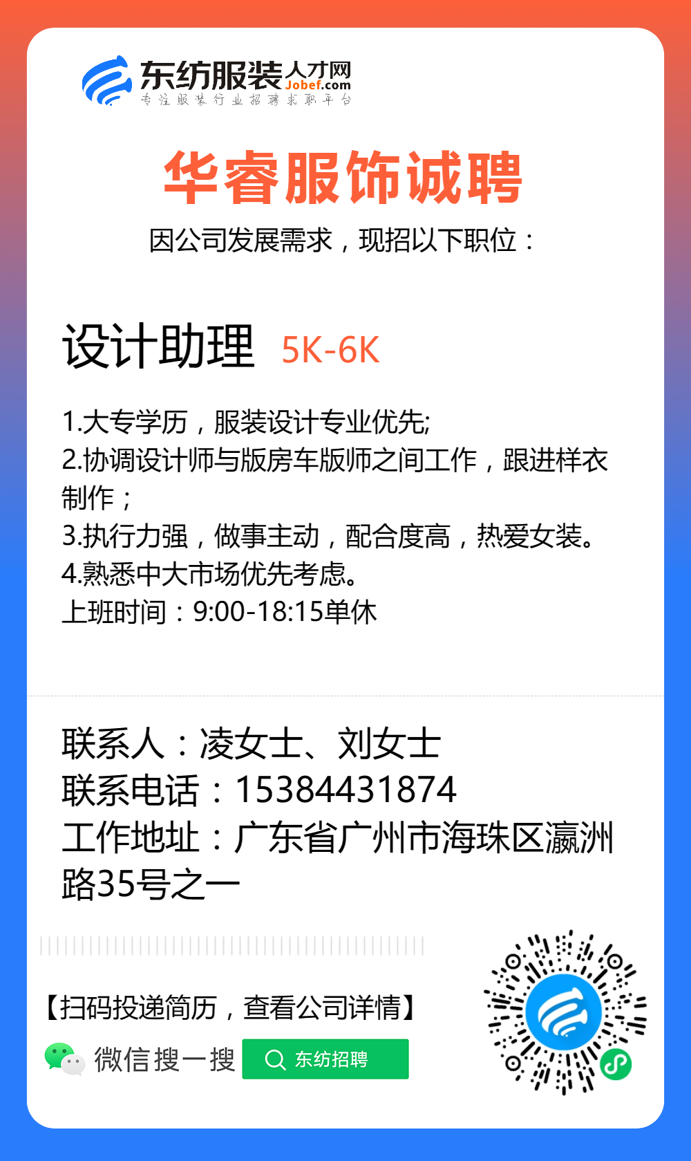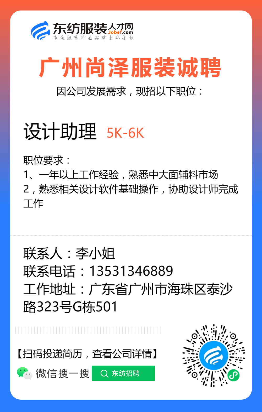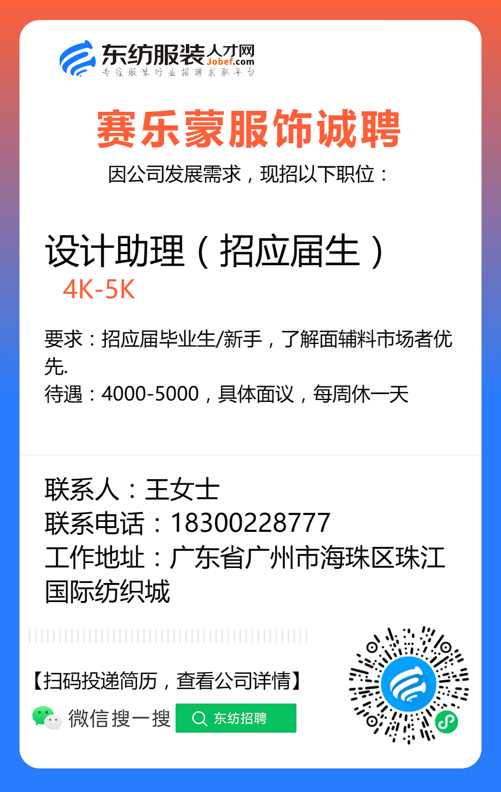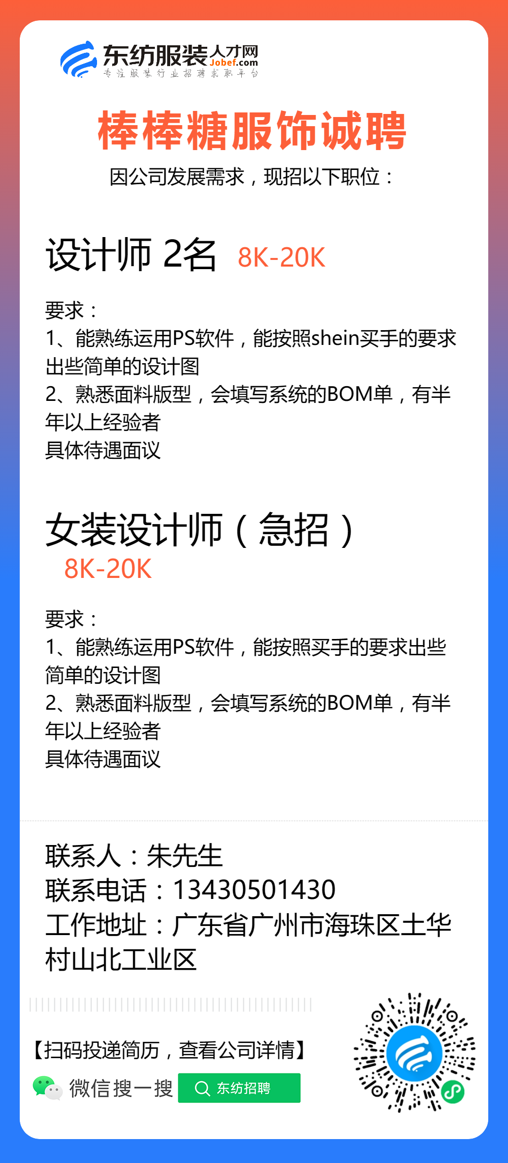 >服装招聘·设计类丨3. 23号,女装设计师、男装设计师、童装设计师、设计助理.....