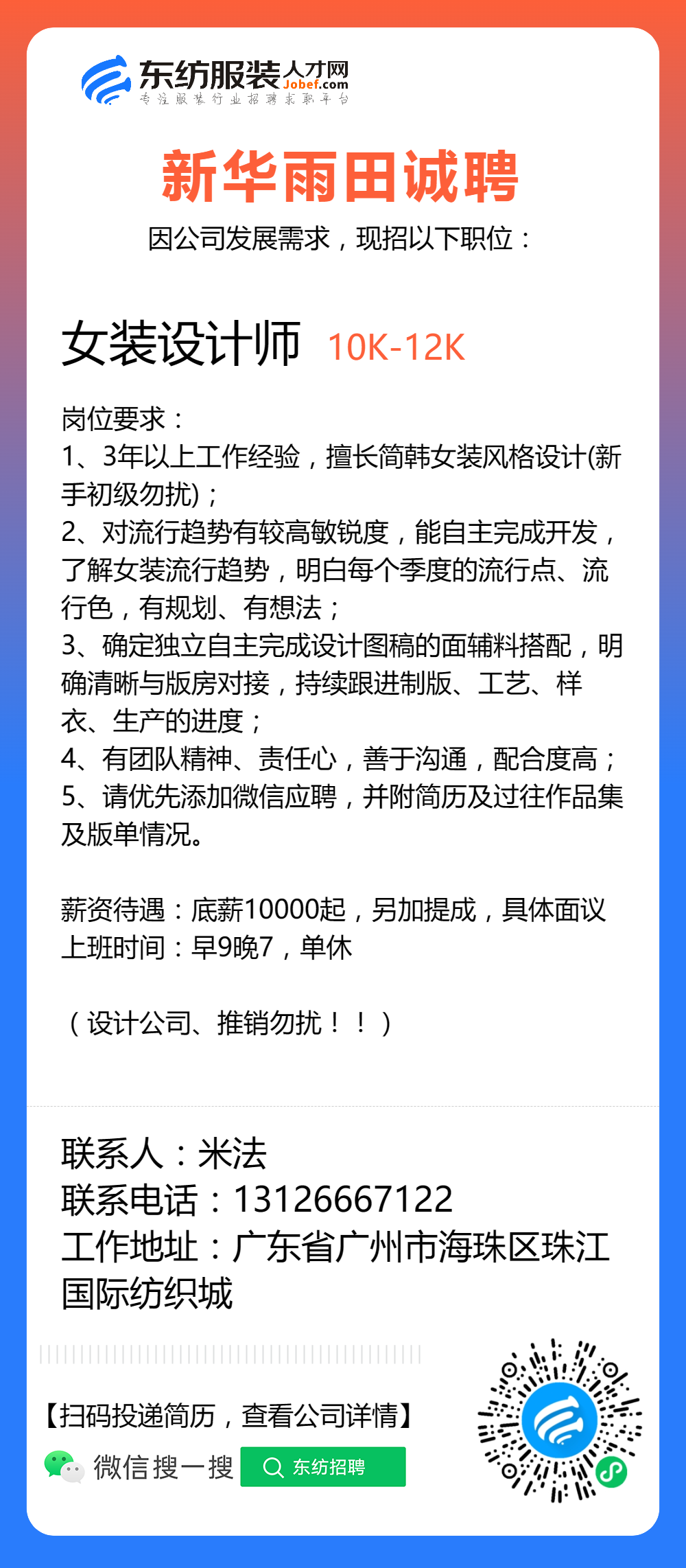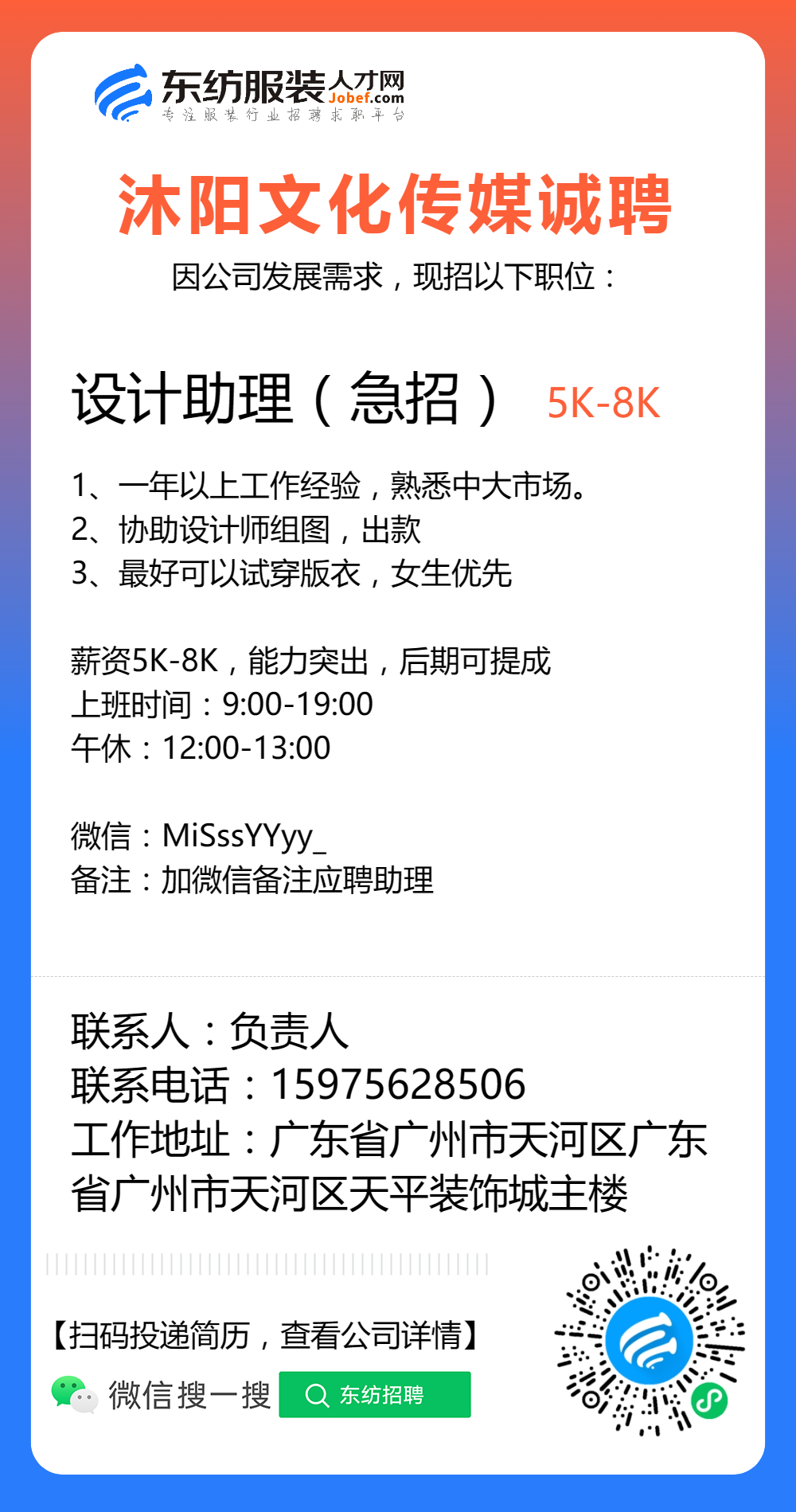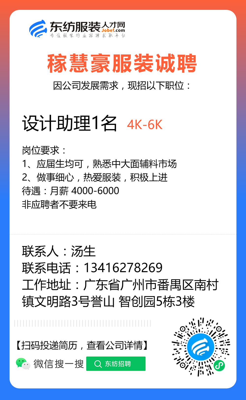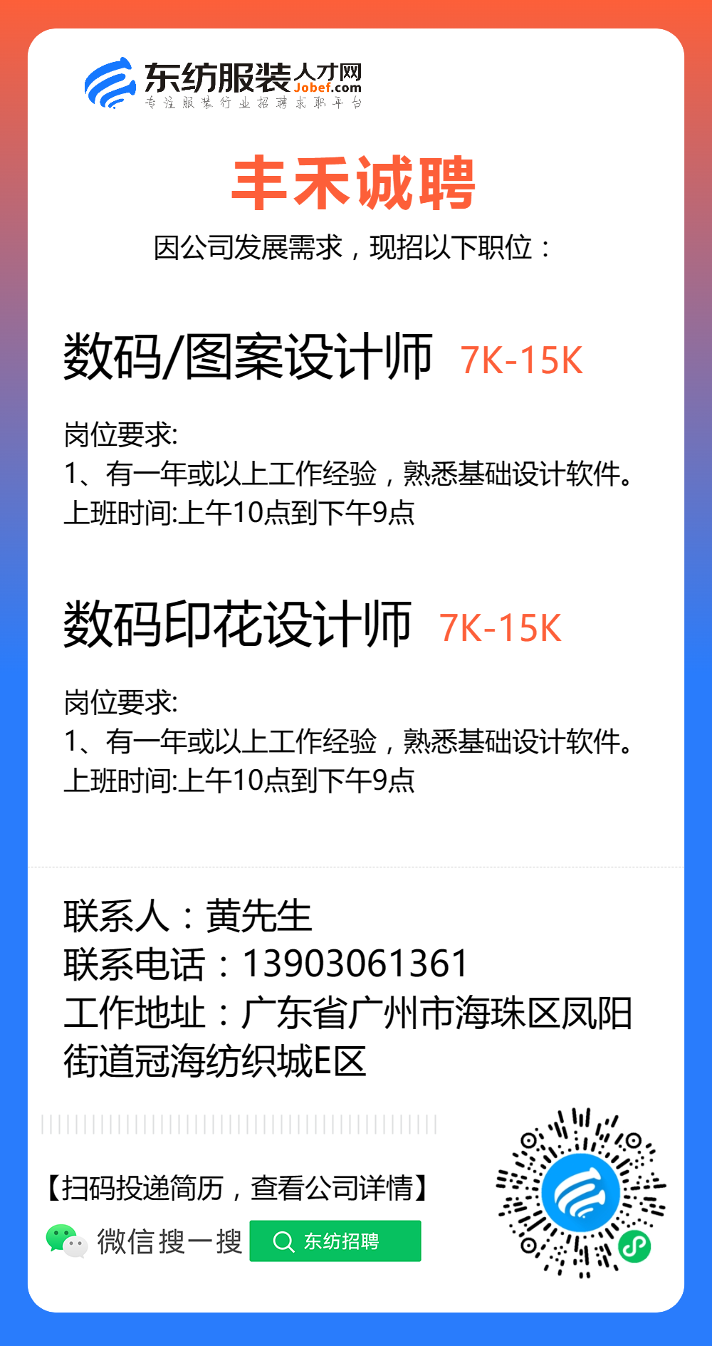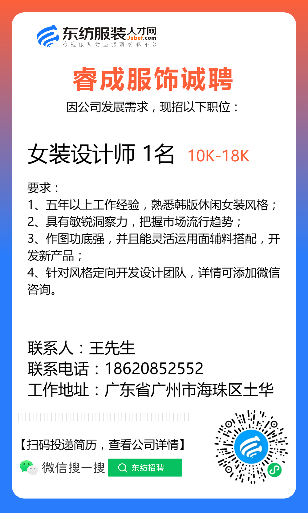 >服装招聘·设计类丨3. 23号,女装设计师、男装设计师、童装设计师、设计助理.....