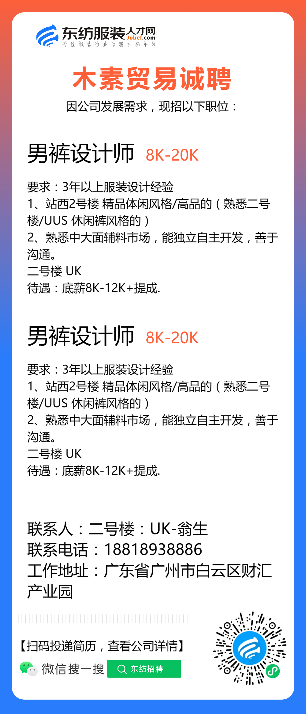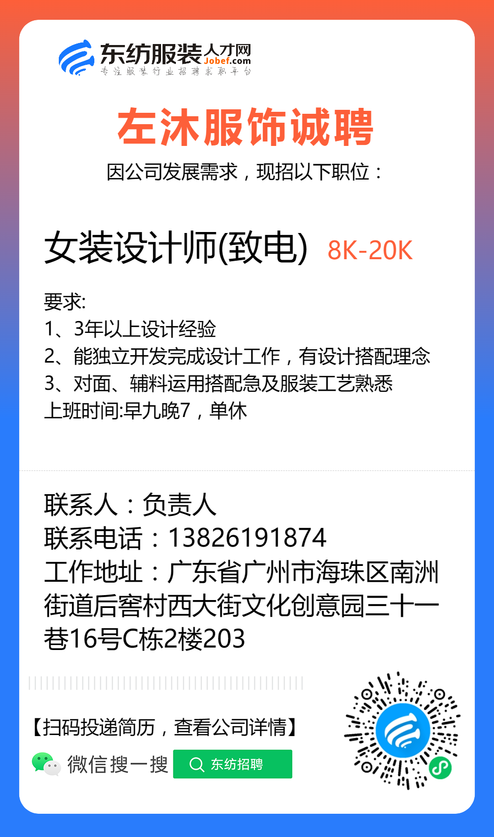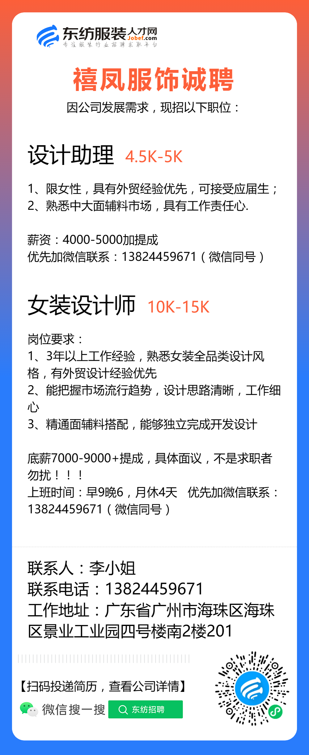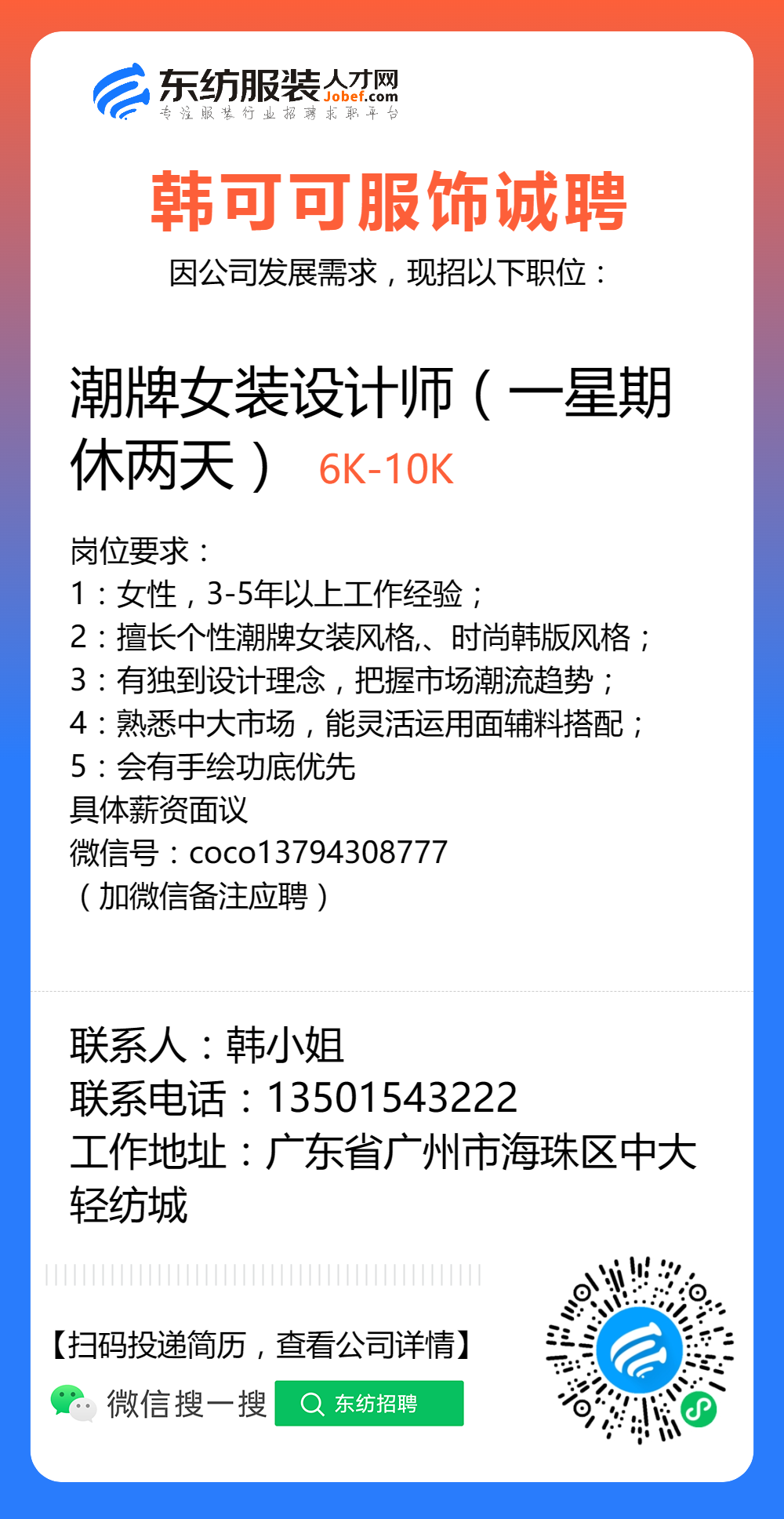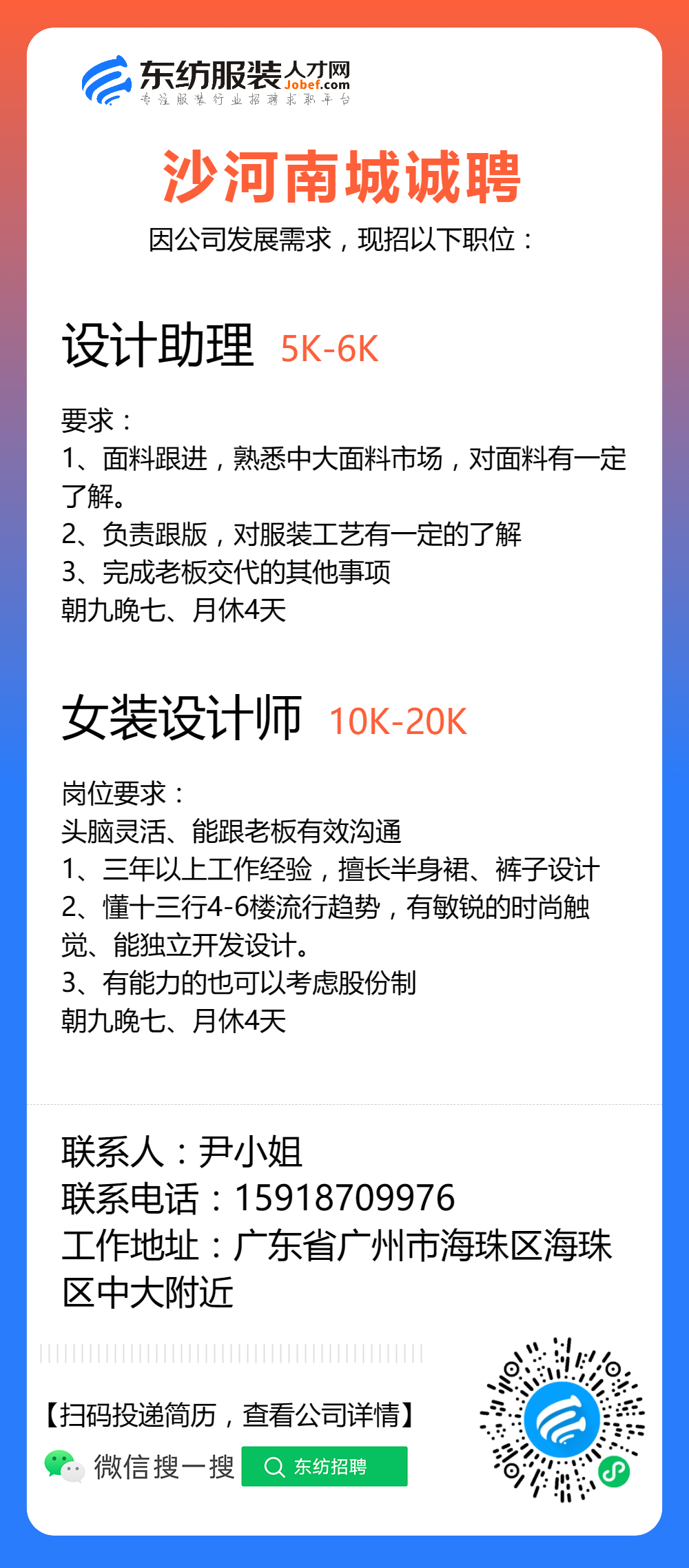 服装招聘·设计类丨3. 23号,女装设计师、男装设计师、童装设计师、设计助理.....